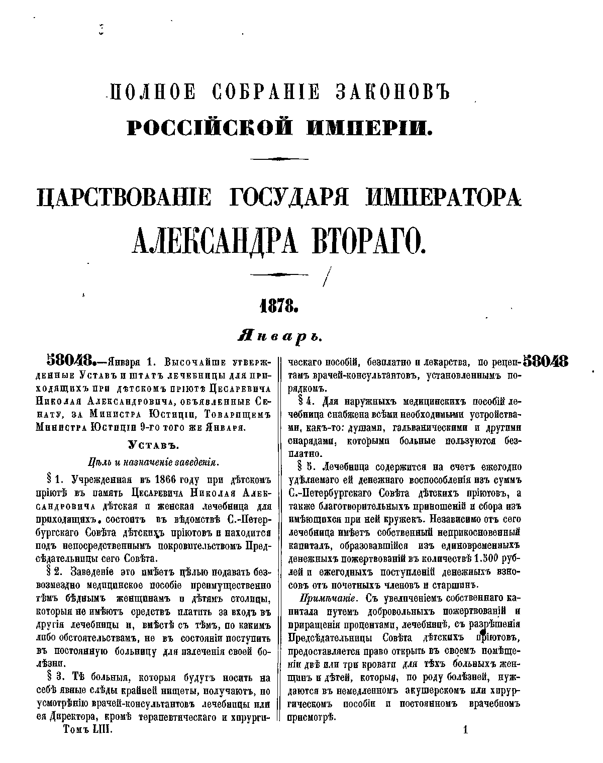 Полное собрание законов Российской Империи. Собрание Второе. Том LIII. Отделение 1