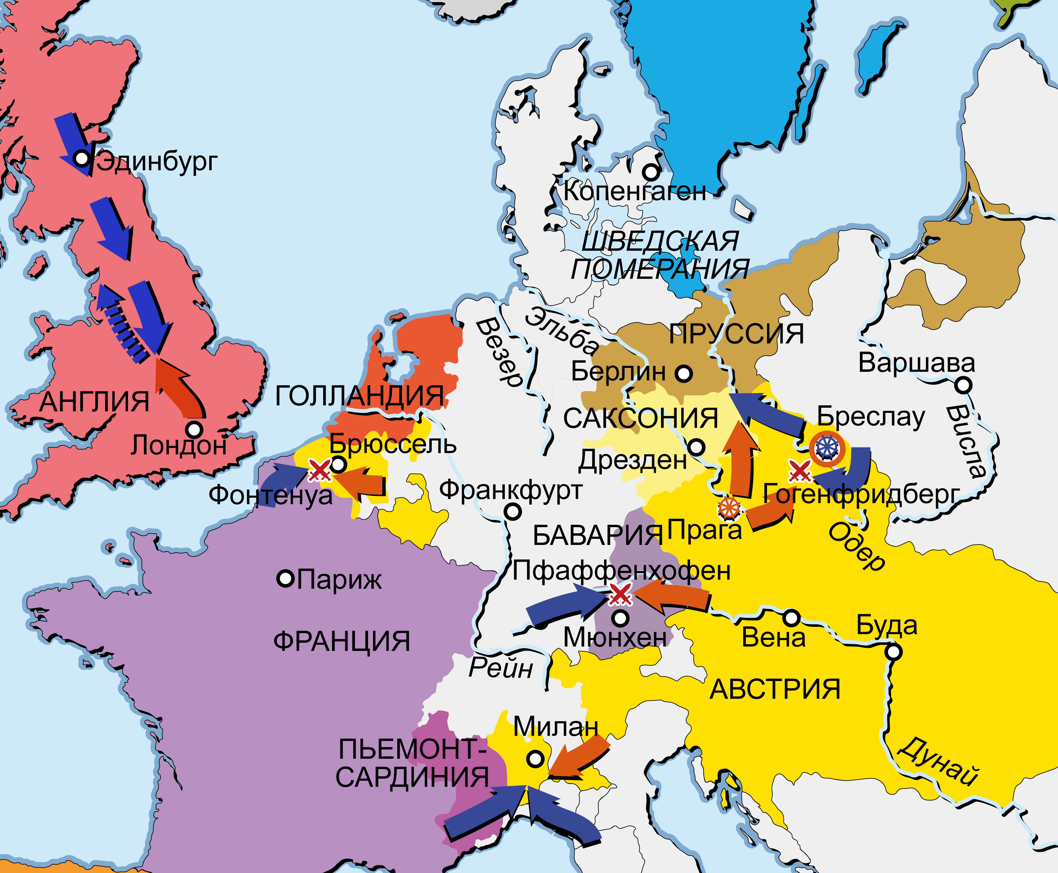 Полки Англии, Испании, Франции, Швеции, Австрии, Баварии, Саксонии, Пруссии