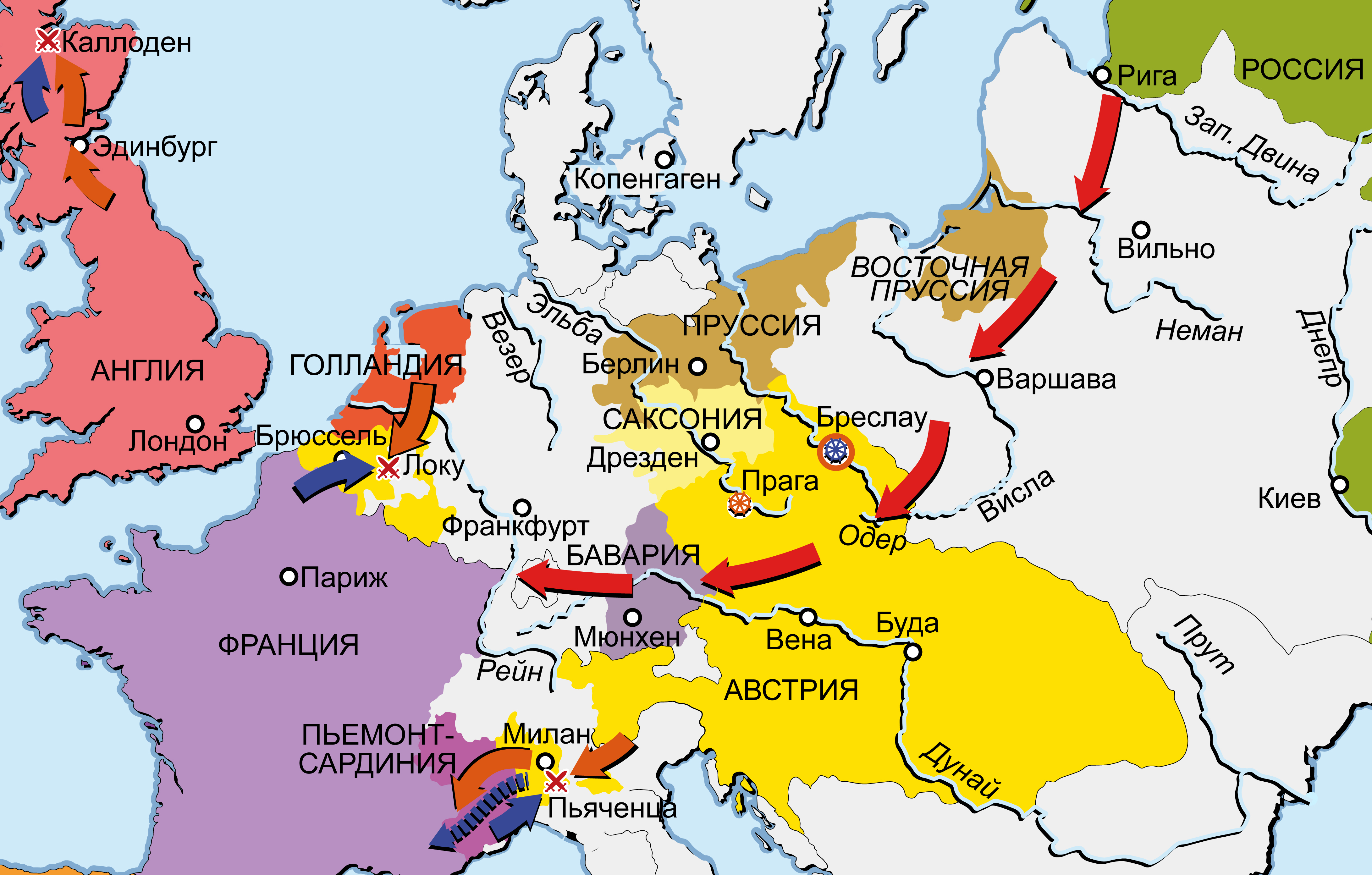Война за австрийское наследство 1740–1748 гг. Карта кампаний 1746–1748 гг. в Центральной Европе