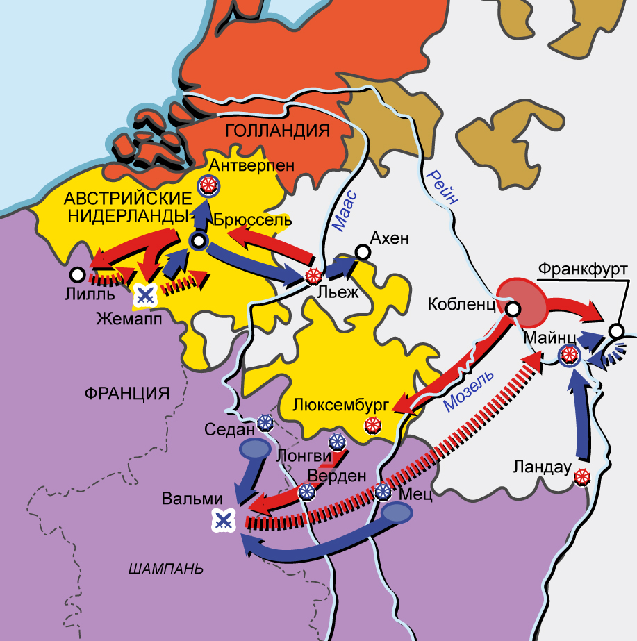 Первая антифранцузская коалиция 1792–1795 гг. Карта кампаний 1792 г. в Бельгии и Шампани