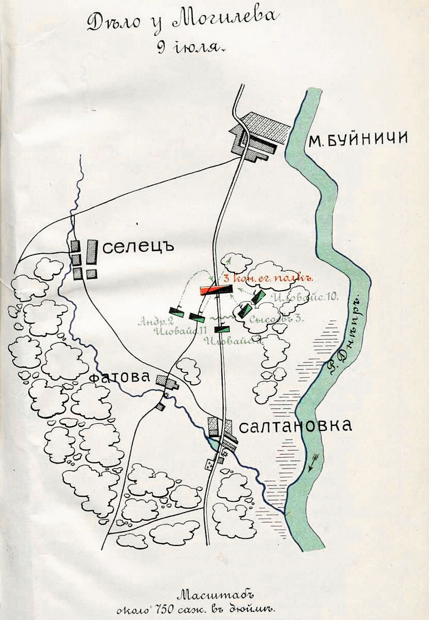 Схема боя отряда полковника Сысоева 3-го с французской кавалерией 21 (9) июля 1812 года под Могилевом