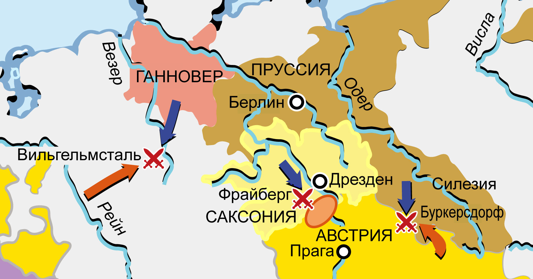 Австро-прусско-итальянская война 1866 г. Карта кампаний 1866 г. в Германии и Богемии