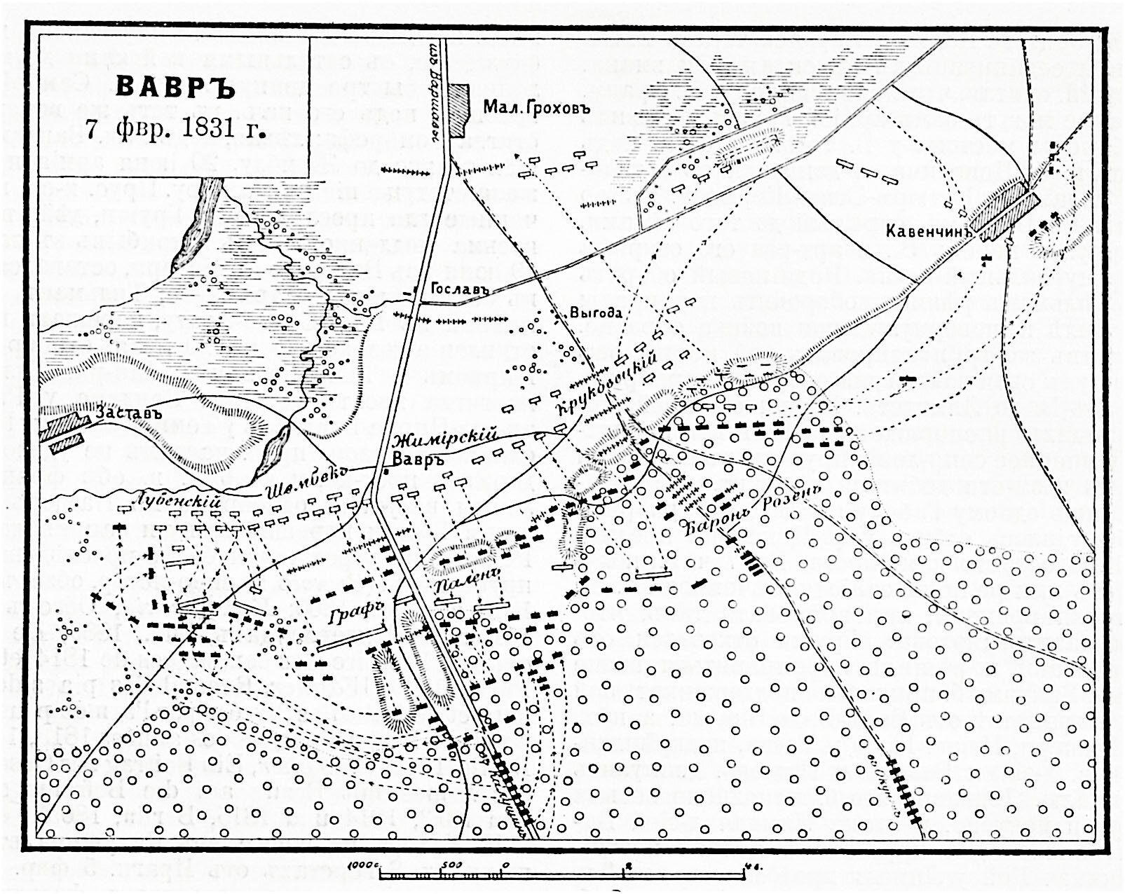 План сражения у хутора Вавр во время Польского восстания в 1831 г.
