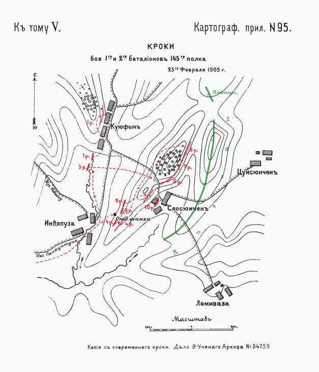 Кроки боя 1-го и 2-го батальонов 145 полка 25 февраля 1905 г.
