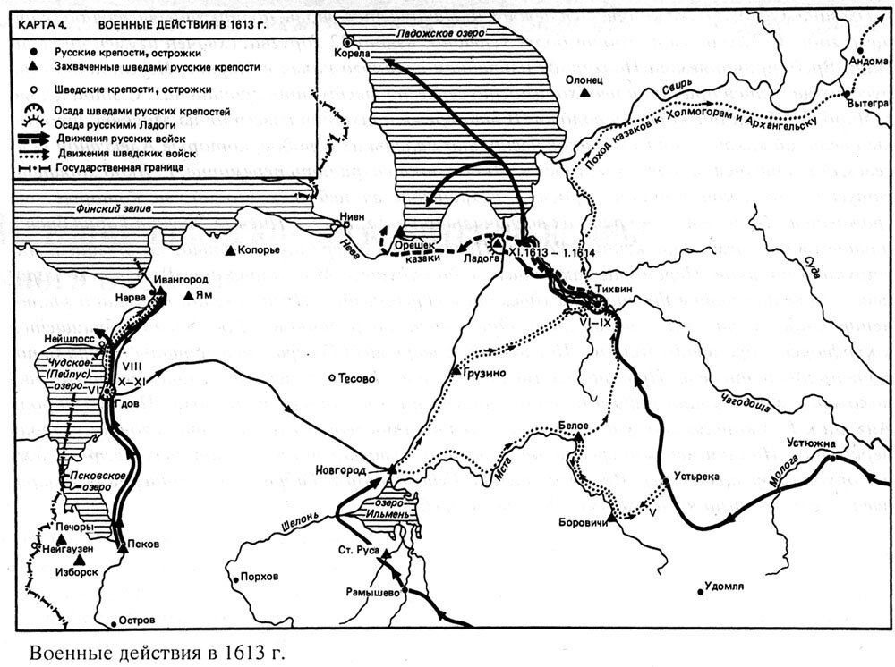 Карта: Русско-шведская война 1610 – 1617 гг. Действия сторон в 1613 г.