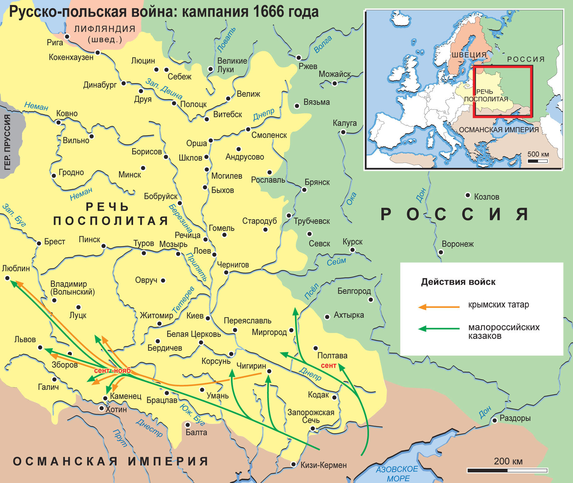 Карта: Русско-польская война 1654–1667 гг. Кампания 1666 г.