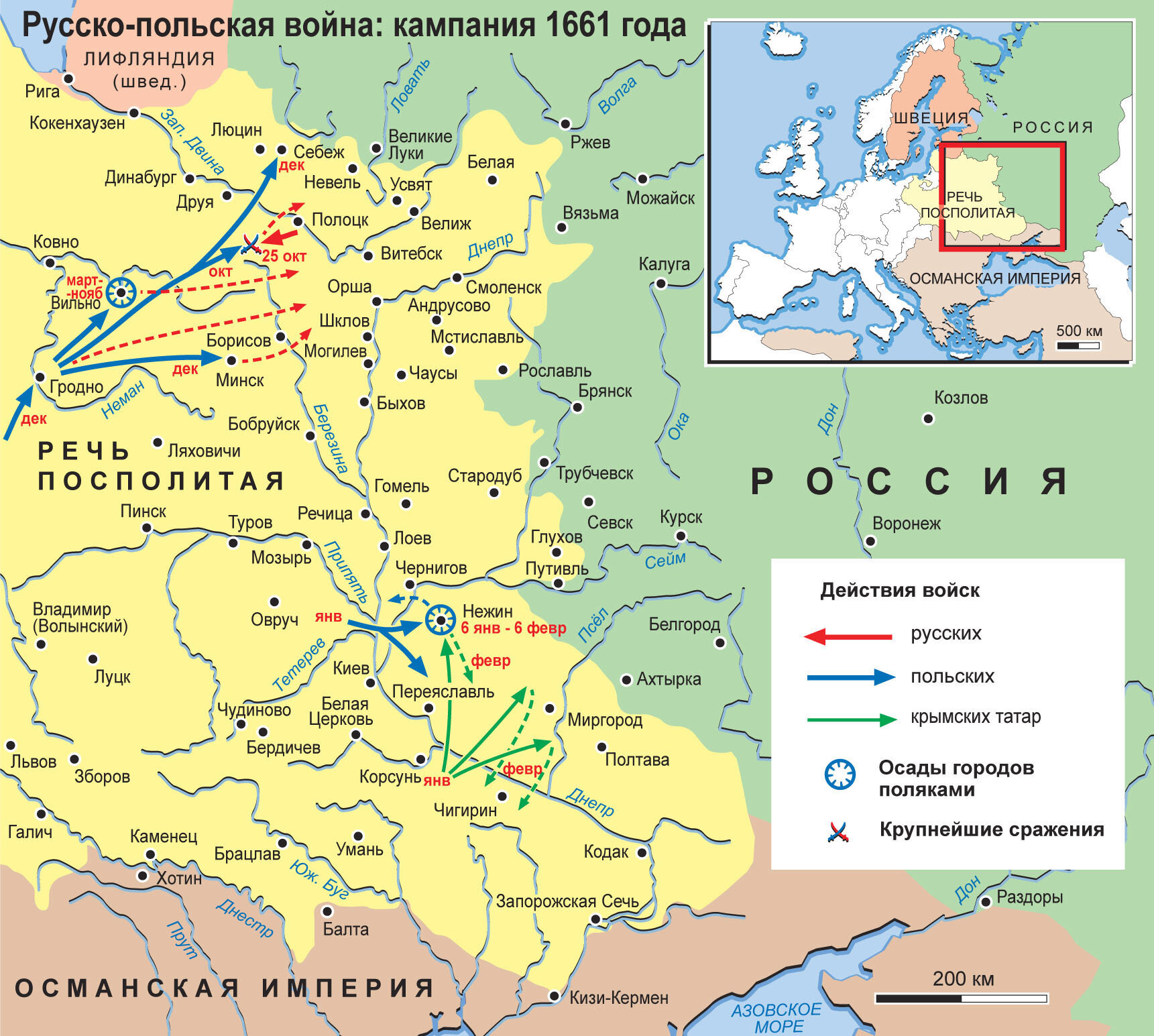 Карта: Русско-польская война 1654 – 1667. Кампания 1661 г.