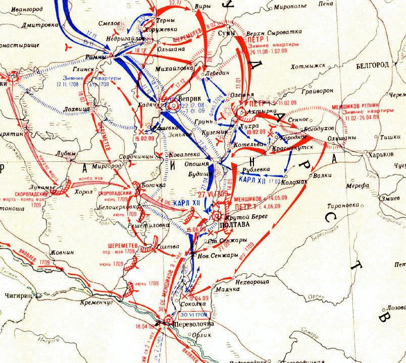 Карта: Полтавская операция 1709 гг.