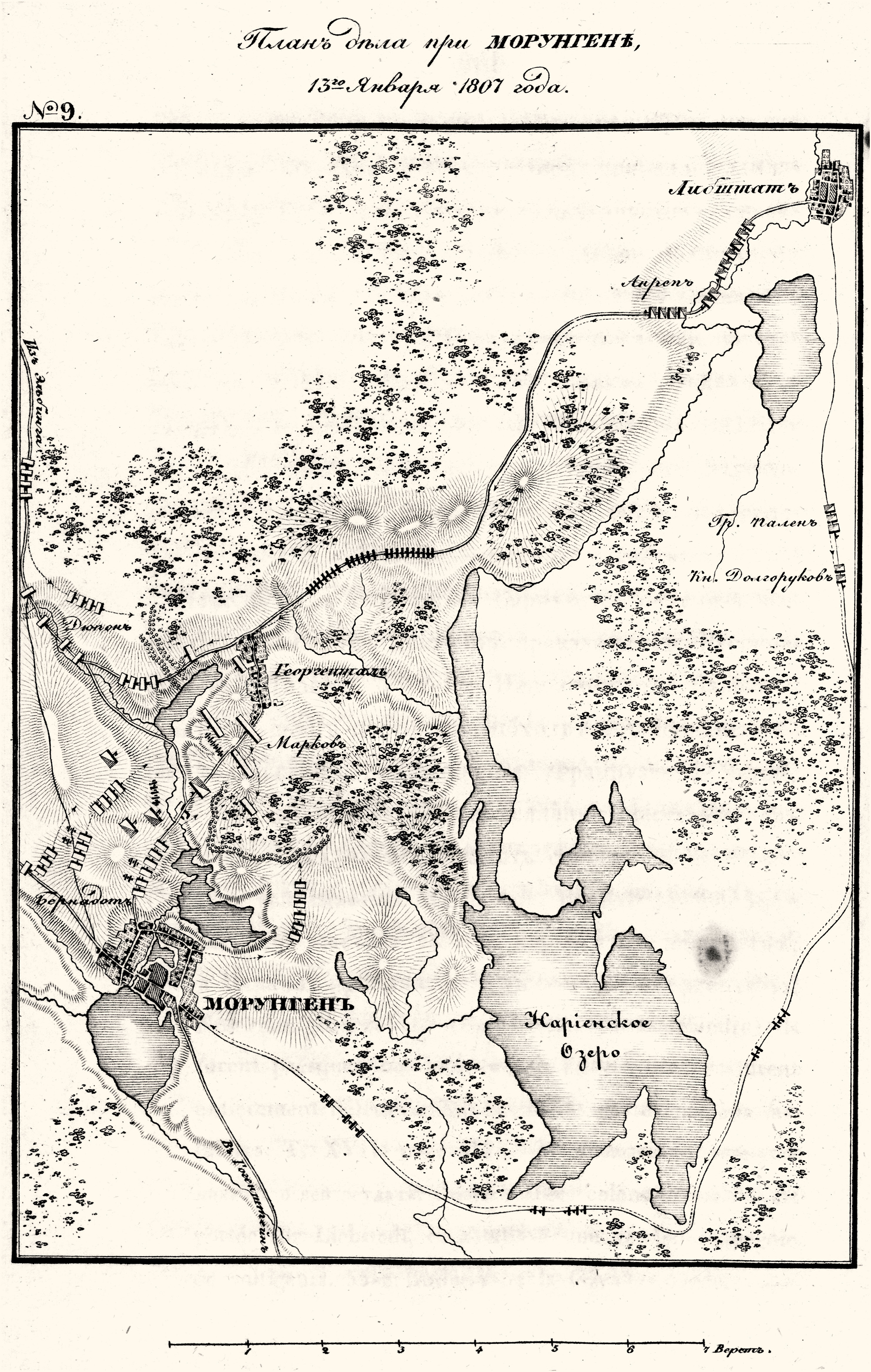 Карта: Дело при Морунгене 13 (25) января 1807 года [и бой за г. Либштадт]