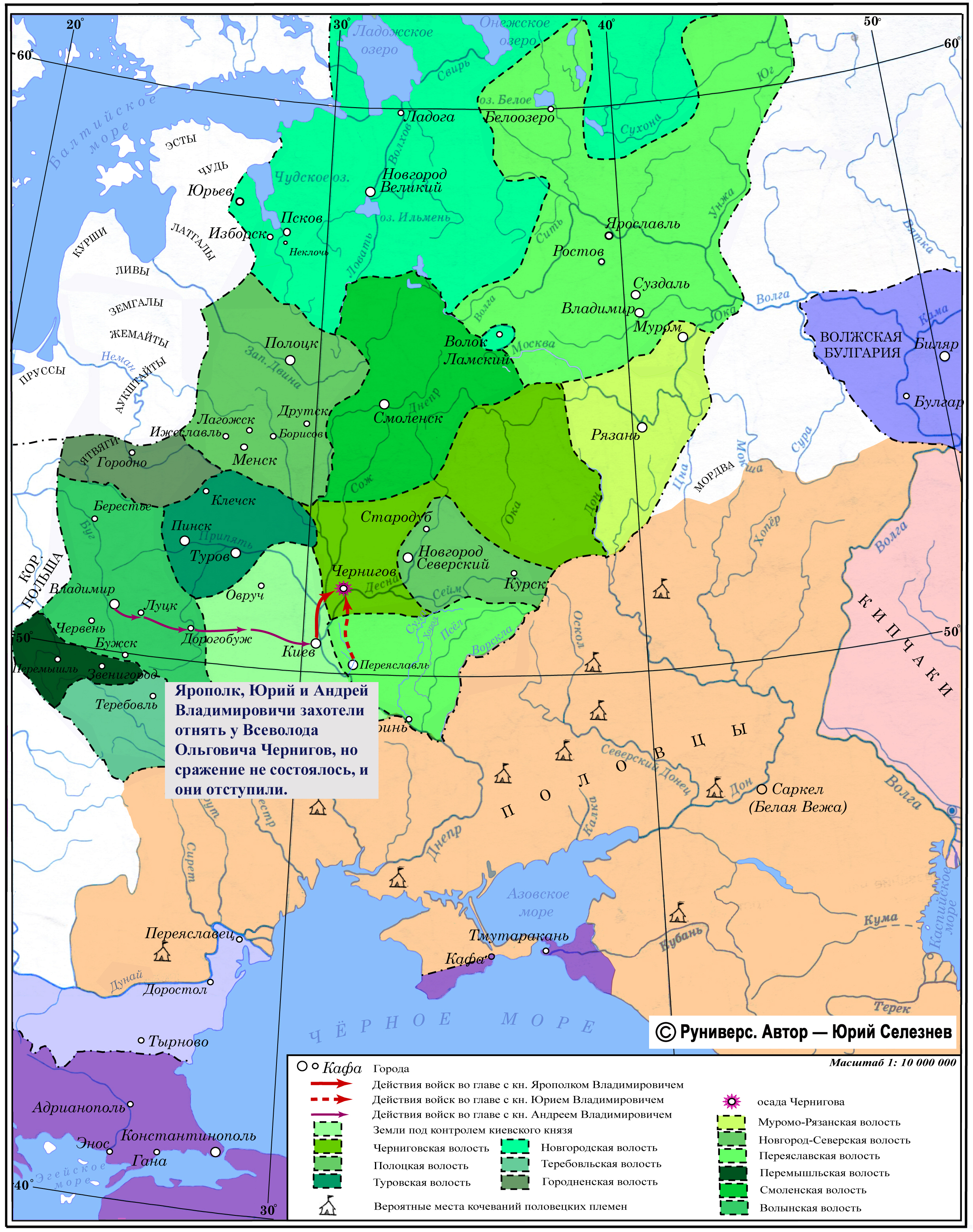 Ярополк, Юрий и Андрей Владимировичи захотели отнять у Всеволода Ольговича Чернигов, но сражение не состоялось, и они отступили.
