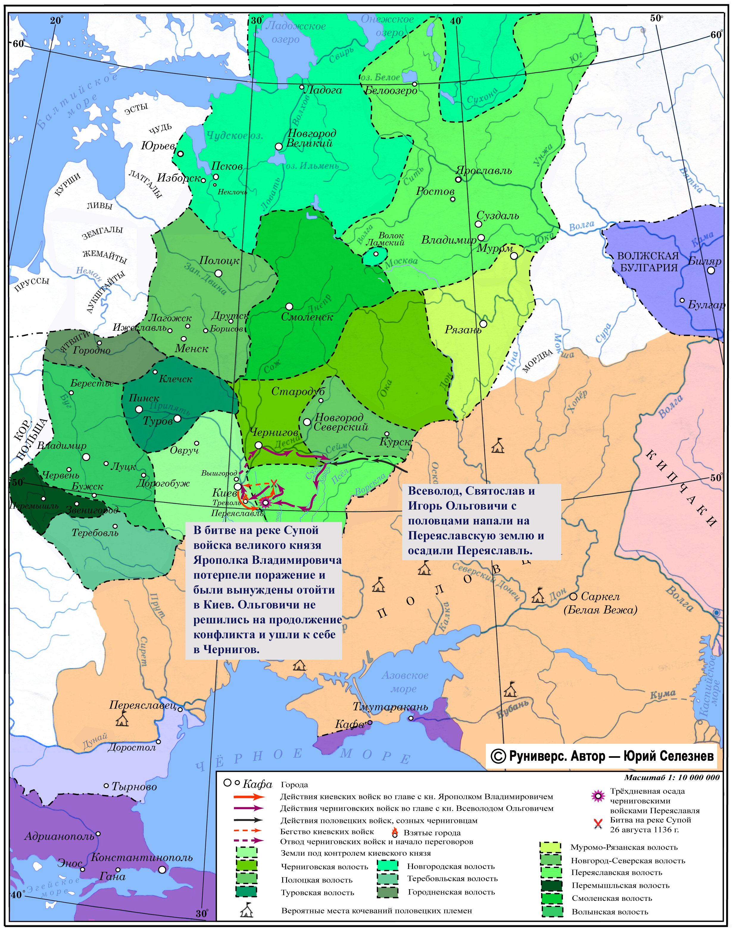 Всеволод, Святослав и Игорь Ольговичи с половцами напали на Переяславскую землю и осадили Переяславль. В битве на реке Супой войска великого князя Ярополка Владимировича потерпели поражение и были вынуждены отойти в Киев. Ольговичи не решились на продолжение конфликта и ушли к себе в Чернигов.