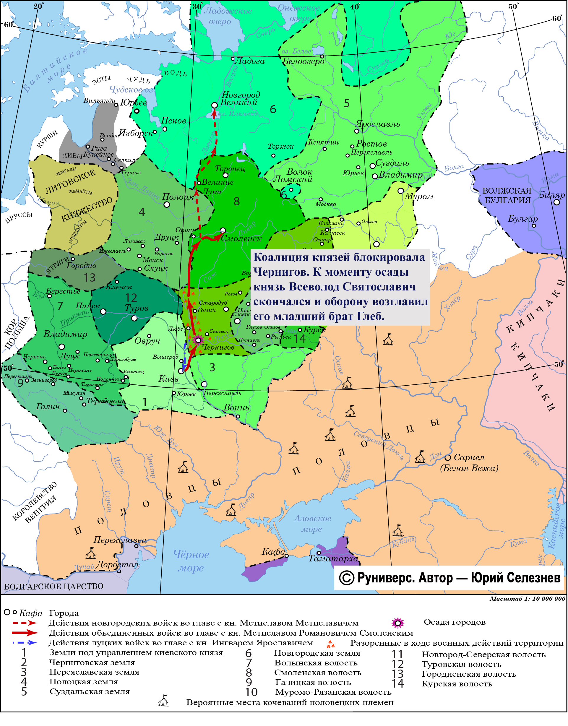 Коалиция князей блокировала Чернигов. К моменту осады князь Всеволод Святославич скончался и оборону возглавил его младший брат Глеб. В результате противостояния Черниговское княжество было значительно ослаблено.