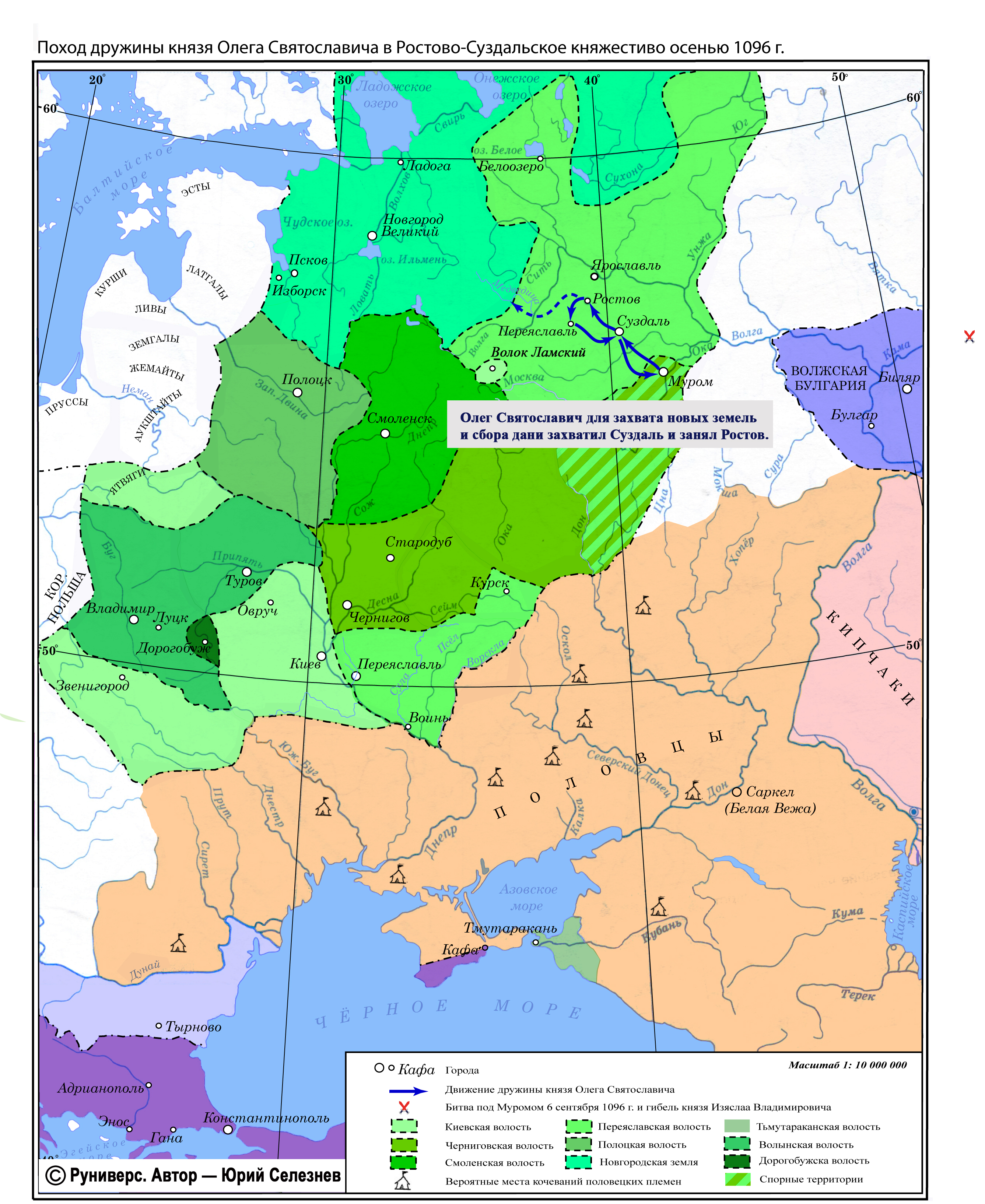 Олег Святославич для захвата новых земель и сбора дани захватил Суздаль и занял Ростов.