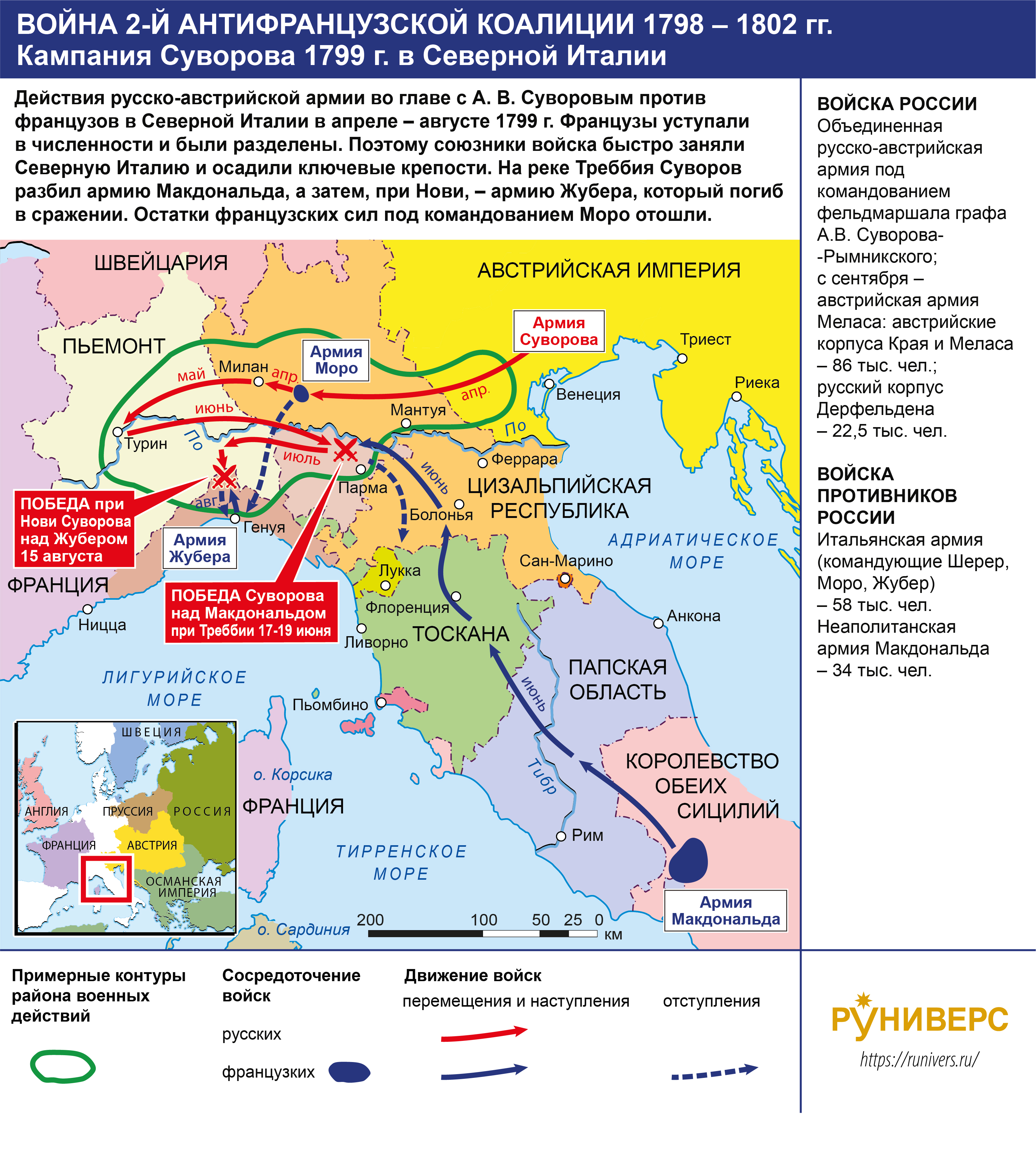 Война Второй антифранцузской коалиции 1798–1802 гг. Кампания Суворова 1799 г. в Северной Италии