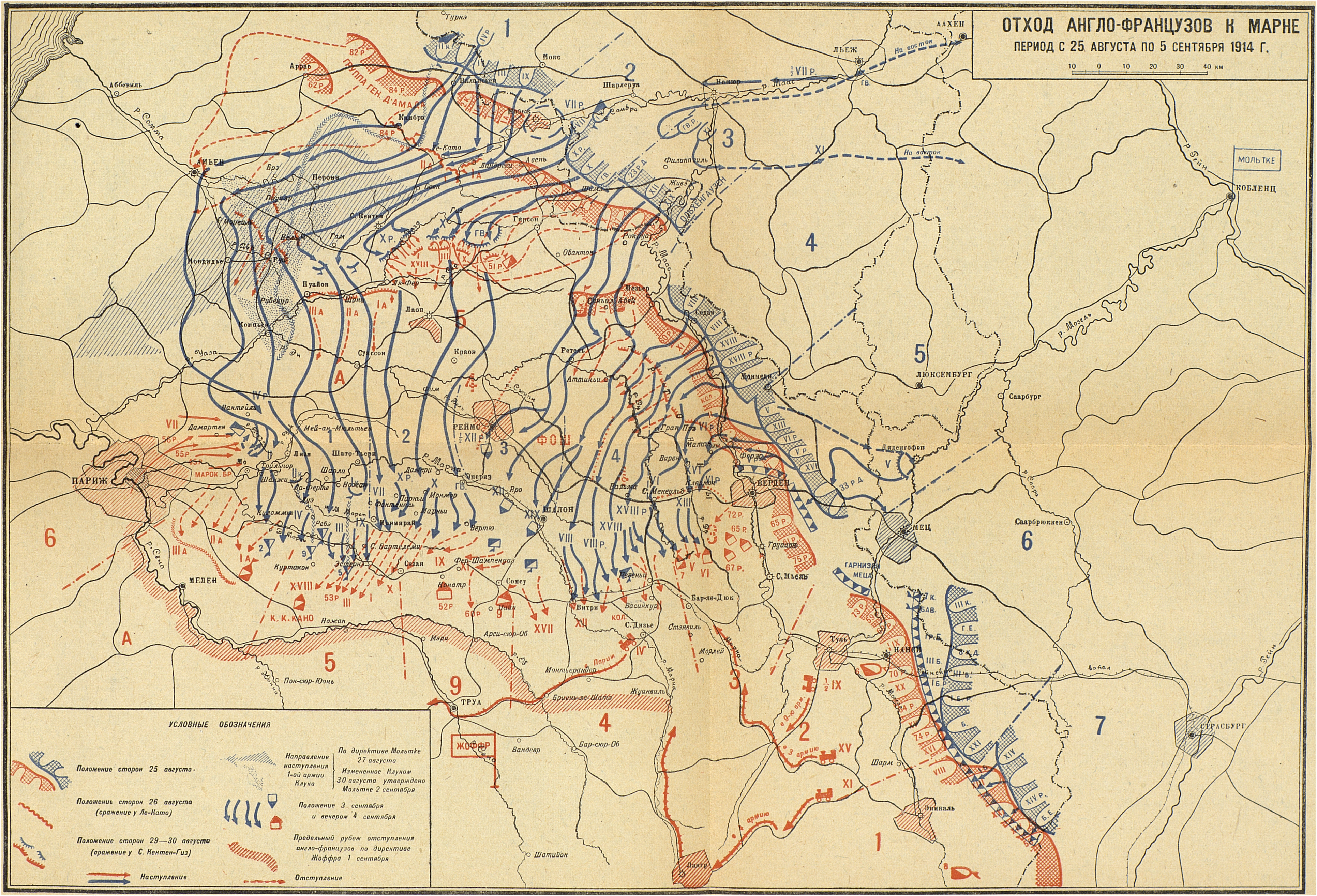 Кампания 1914 года. Французский театр. Отход англо-французов к Марне (период с 25 августа по 5 сентября)