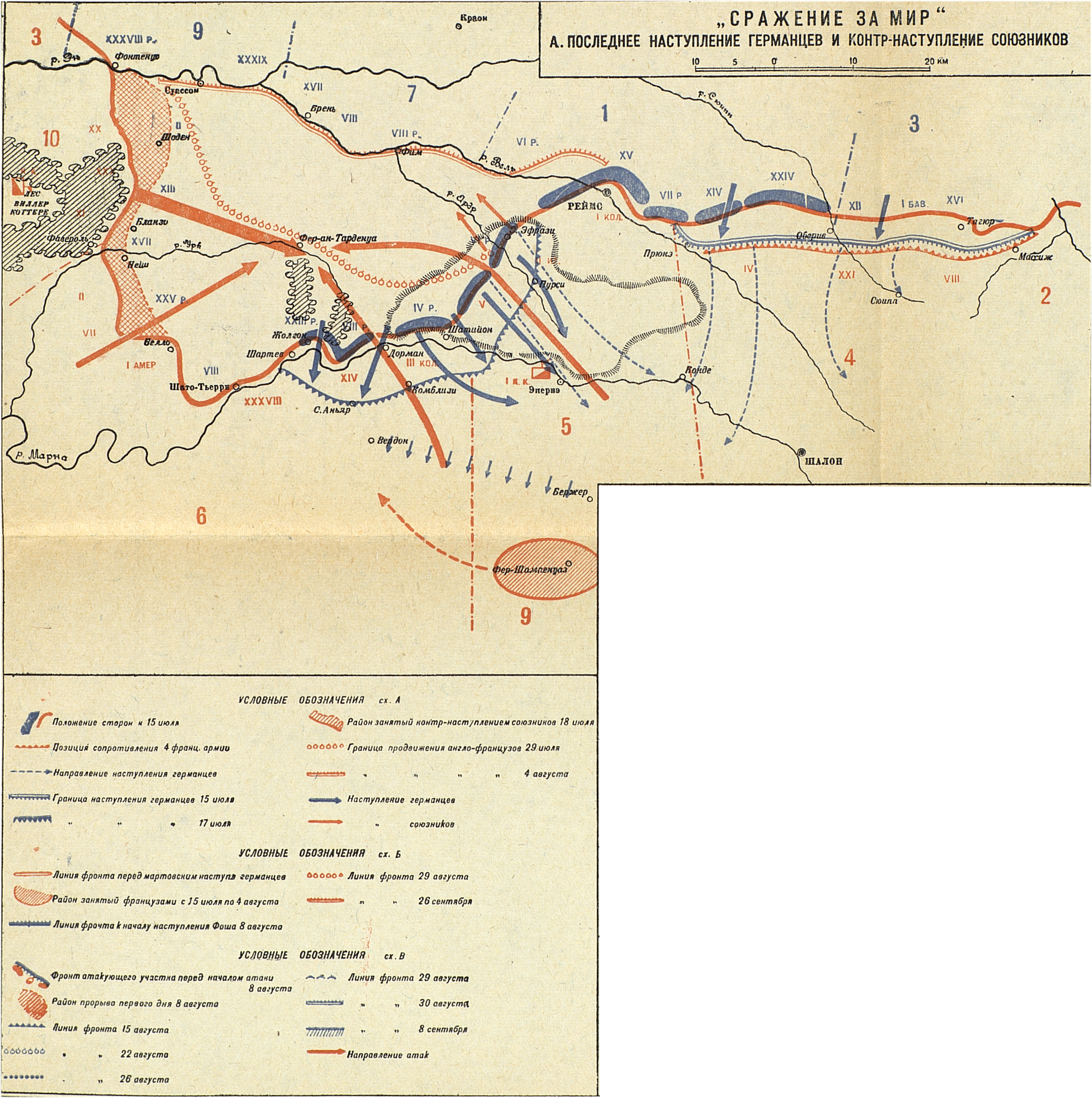 Кампания 1918 года. Французский театр. "Сражение за мир". А. Последнее наступление германцев и контр-наступление союзников (период с 15 июля по 4 августа).