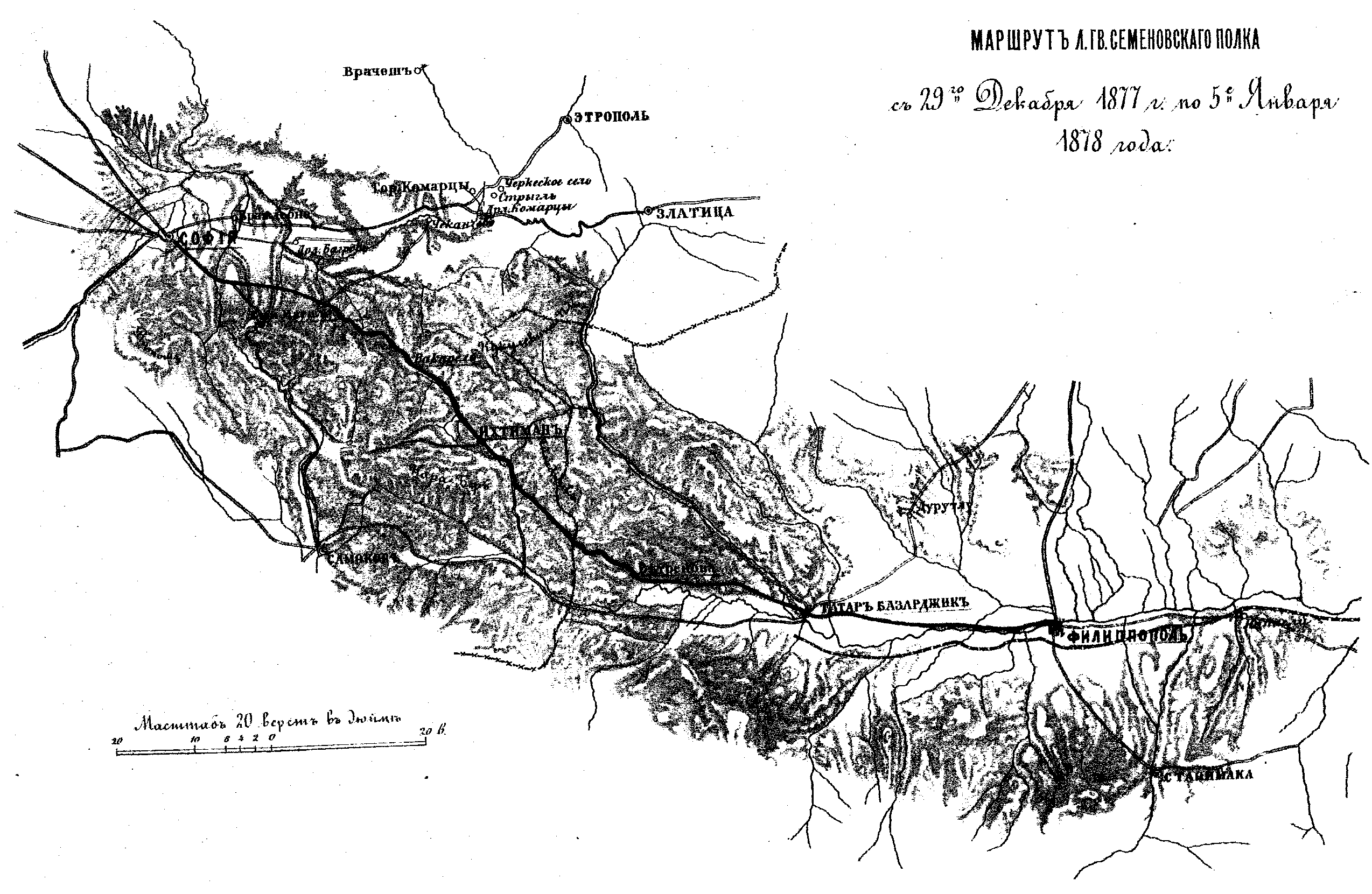 Маршрут Лейб-Гвардии Семеновского полка с 29 декабря 1877 по 5 января 1878 года