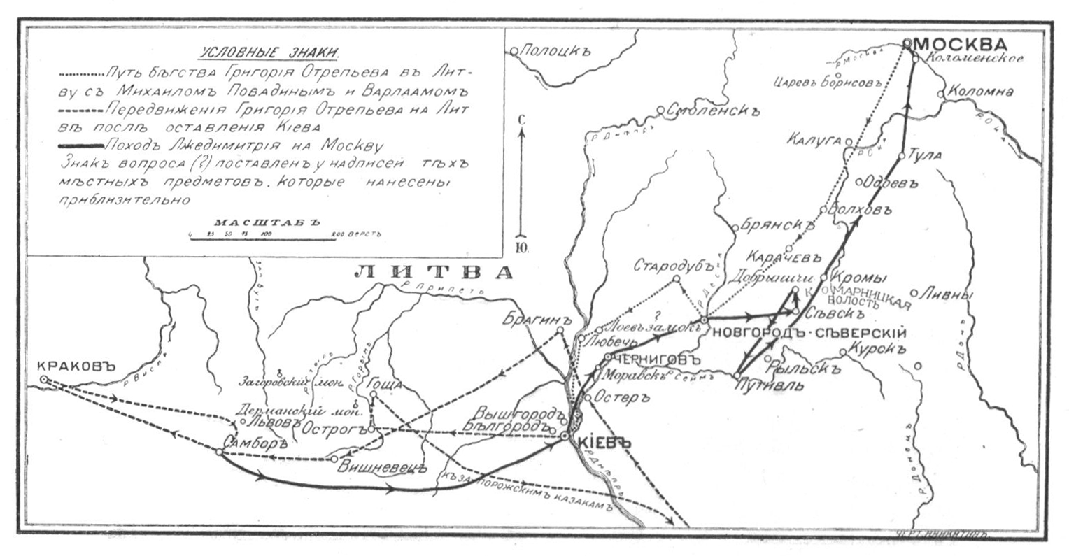 Путь следования Григория Отрепьева на Литву и Польшу и поход Лжедмитрия на Москву