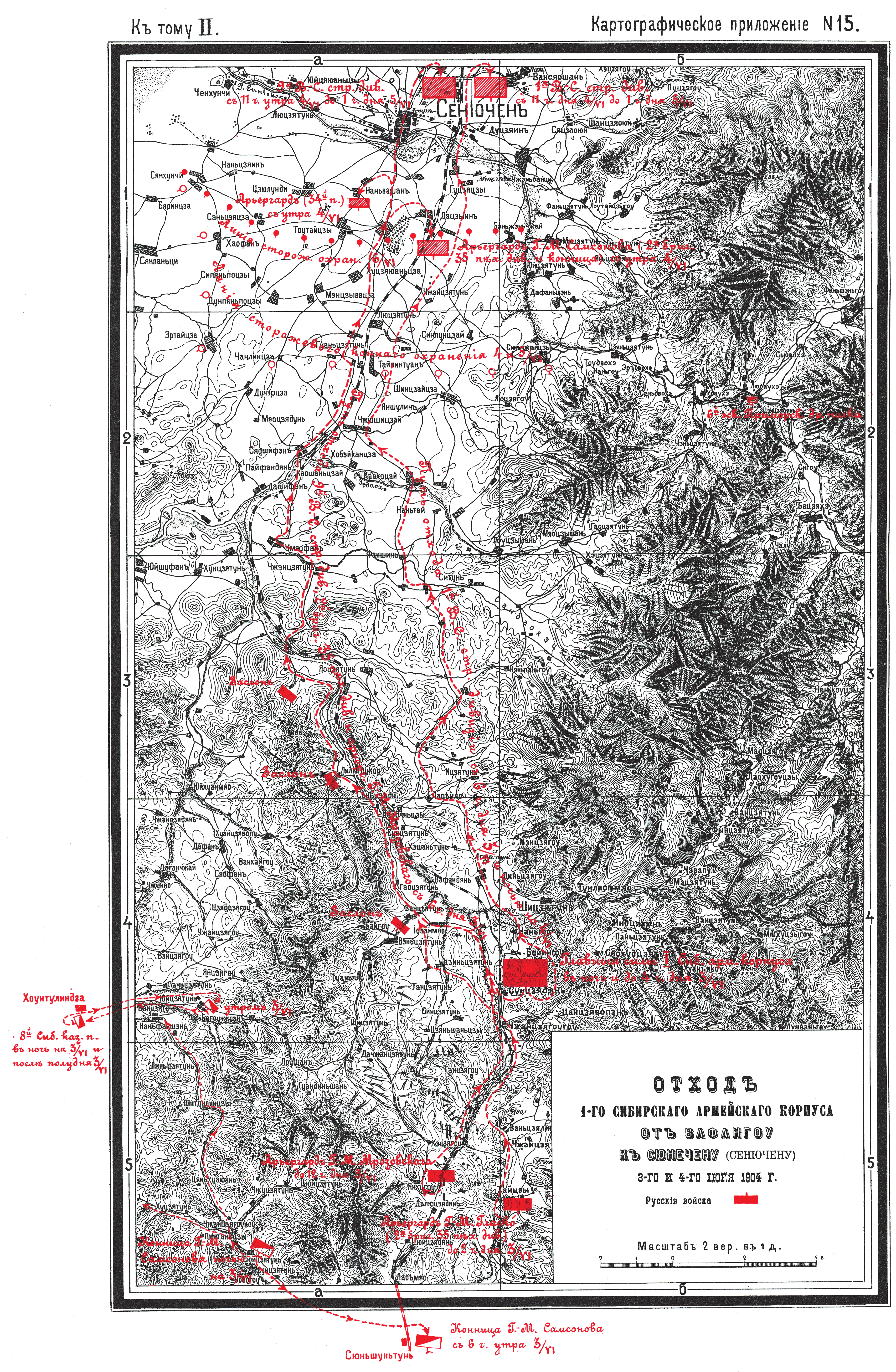 Отход 1 Сибирского армейского корпуса от Вафангоу к Сюнечену (Сениочену) 3 и 4 июля 1904 года