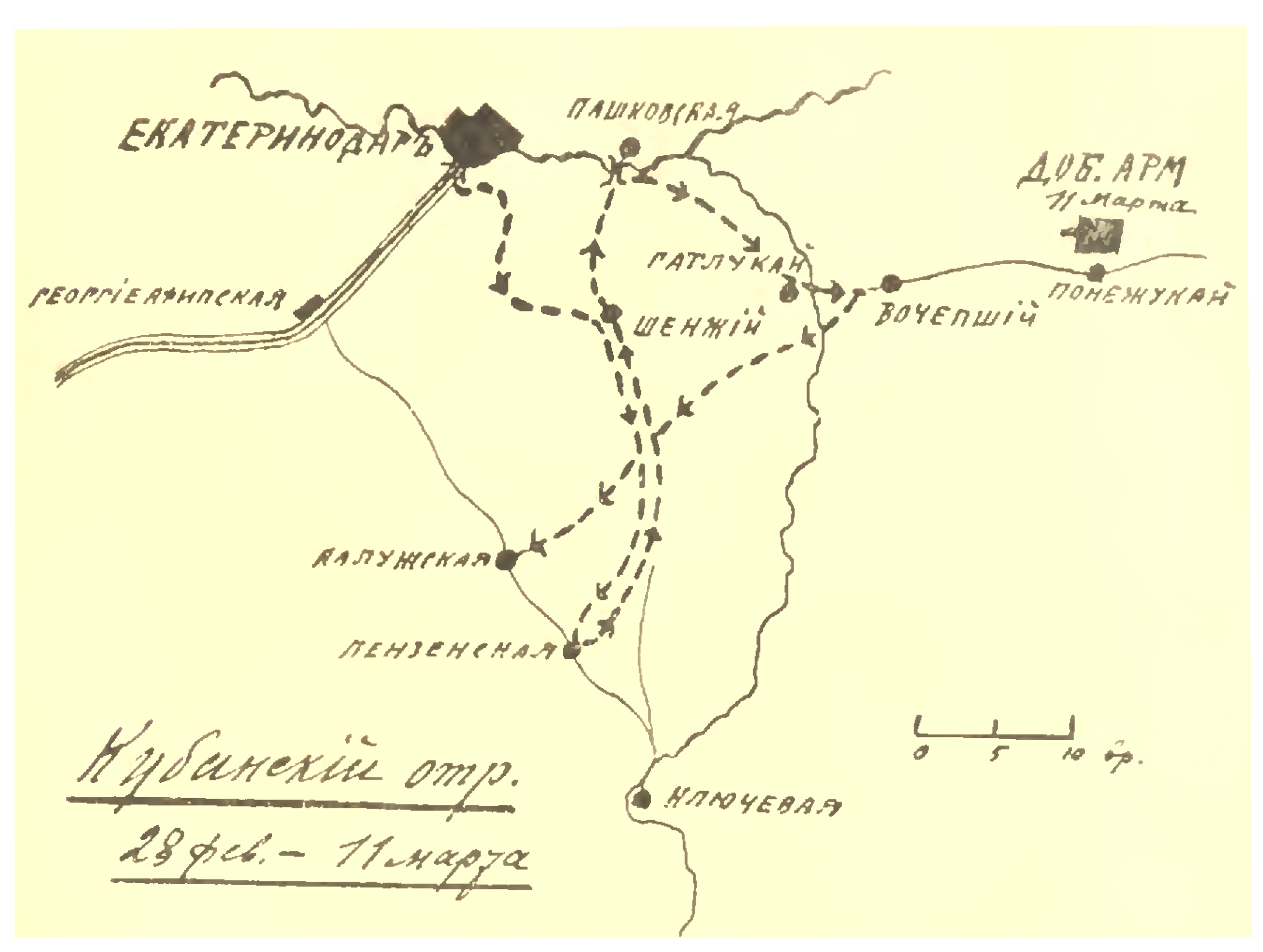 Передвижение Кубанского отряда 28 февраля - 11 марта 1918 года