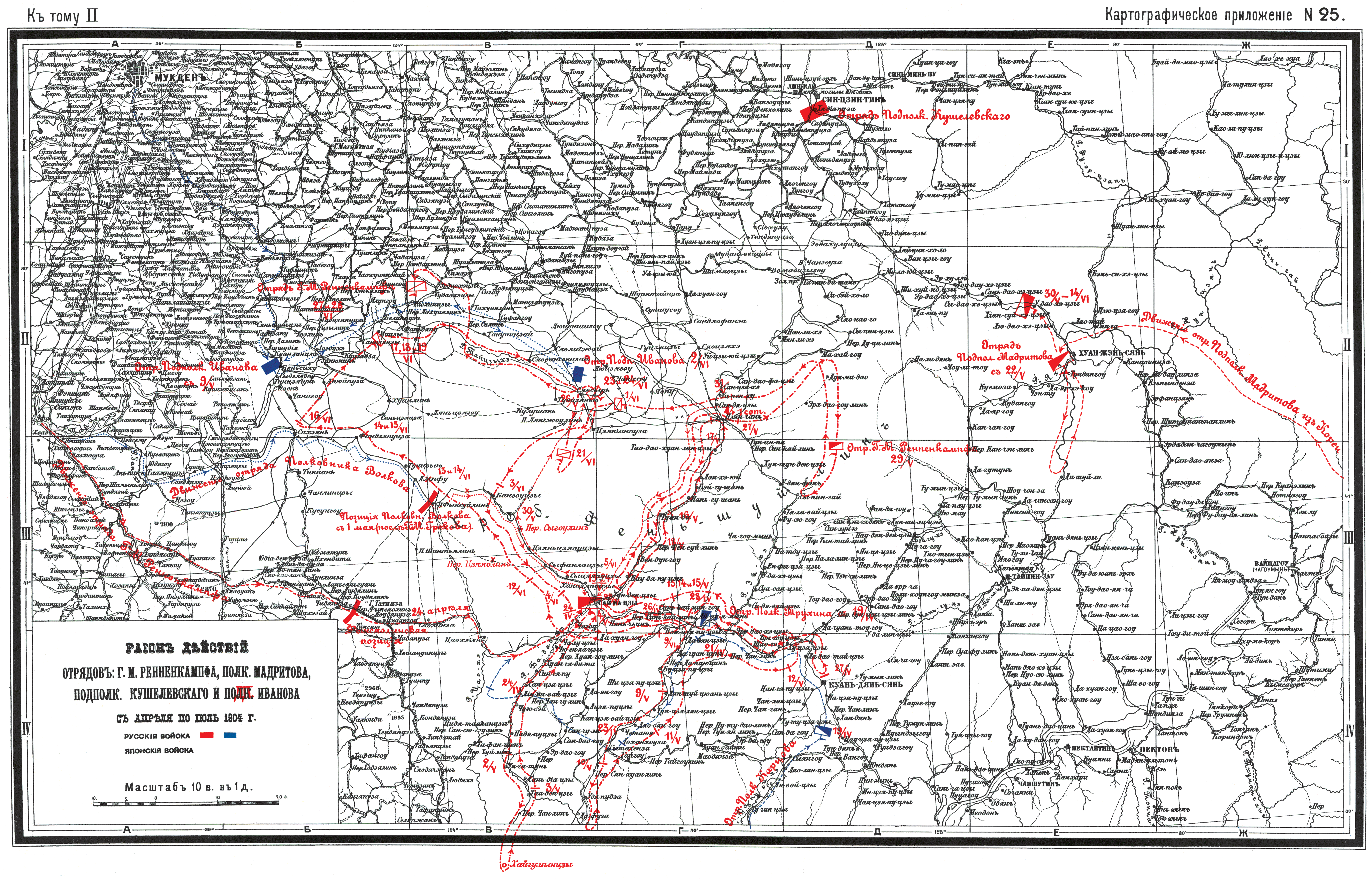Район действий отрядов: генерал-майора Ренненкампфа, Полковника Мадритова, Подполковника Кушелевского и Подполковника Иванова с апреля по июль 1904 года