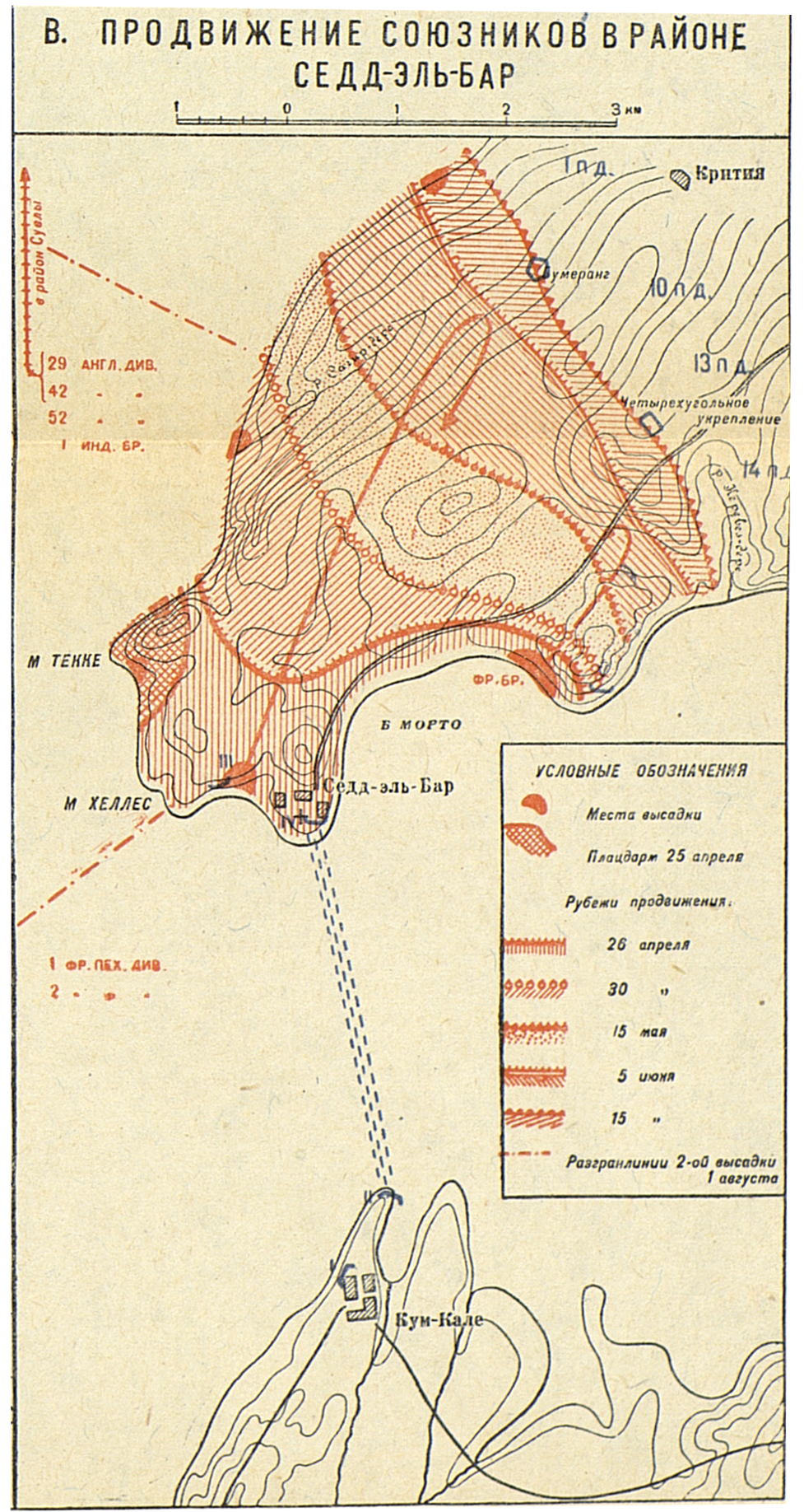 Кампания 1915 года. Азиатско-Турецкий театр. Дарданельская операция (период март-август). Продвижение союзников в районе Седд-Эль-Бар