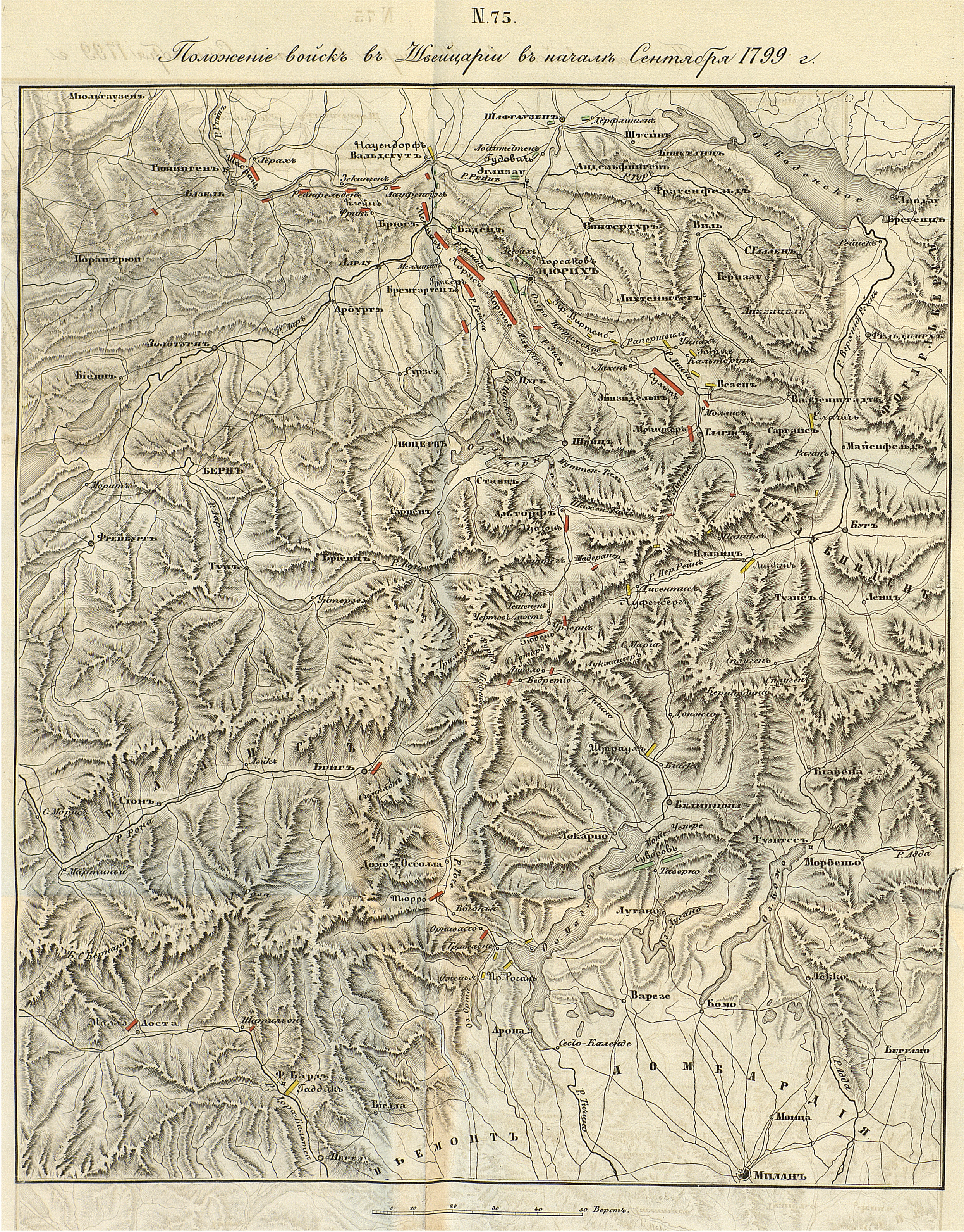 Положение войск в Швейцарии в начале сентября 1799г