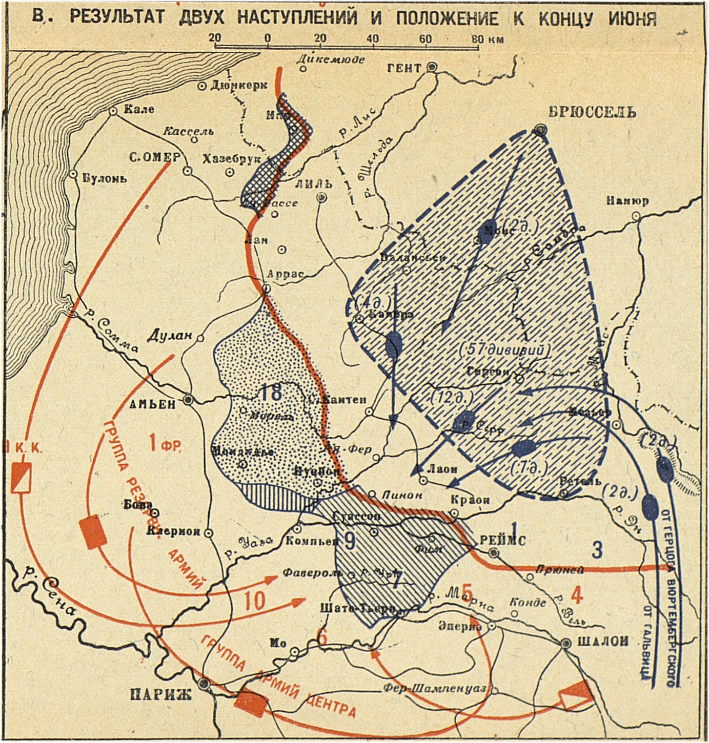 Кампания 1918 года. Французский театр. Второе наступление германцев (период с 27 мая по 11 июня). Результат двух наступлений и положение к концу июня