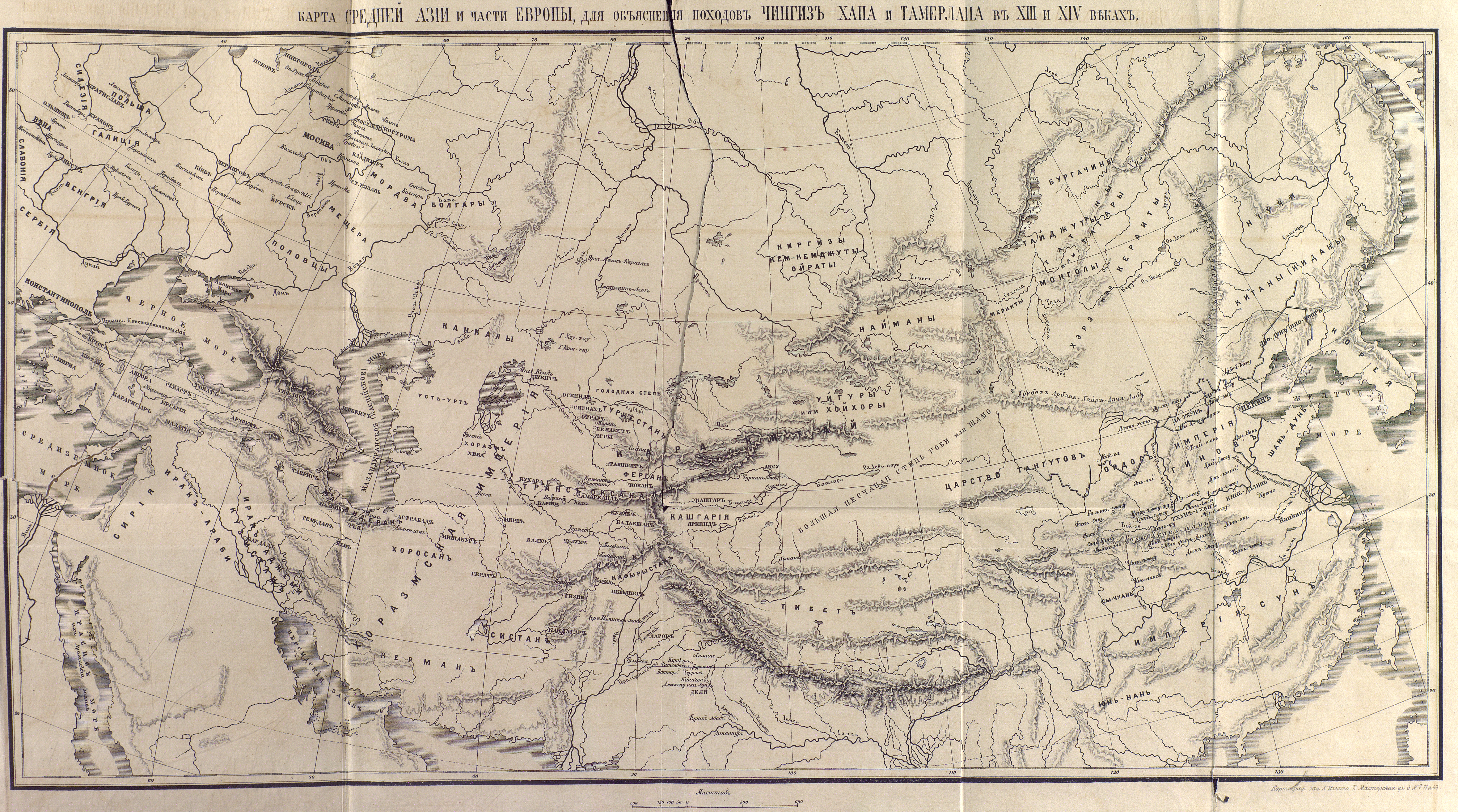 Карта Средней Азии и частей Европы, для объяснения походов Чингис-Хана и Тамерлана в XIII и XIV веках