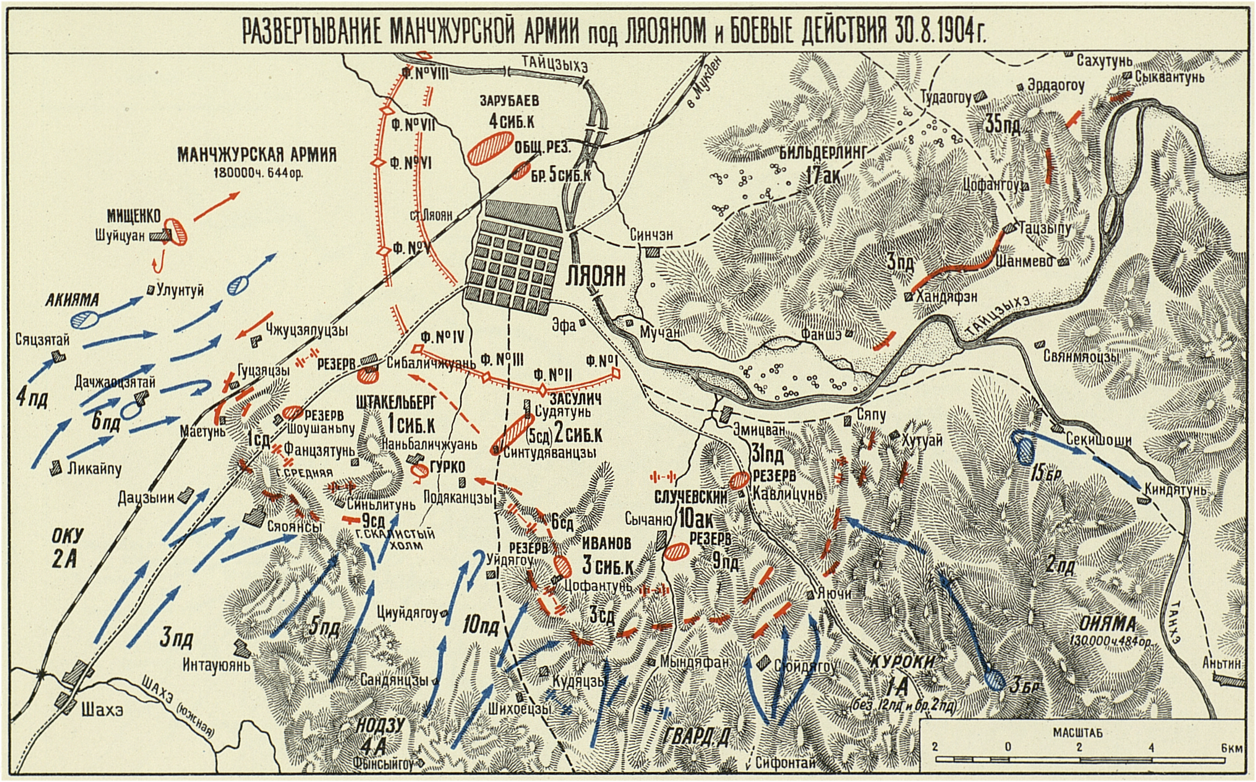 Развертывание Манчжурской армии под Ляояном и боевые действия 30.8.1904г.