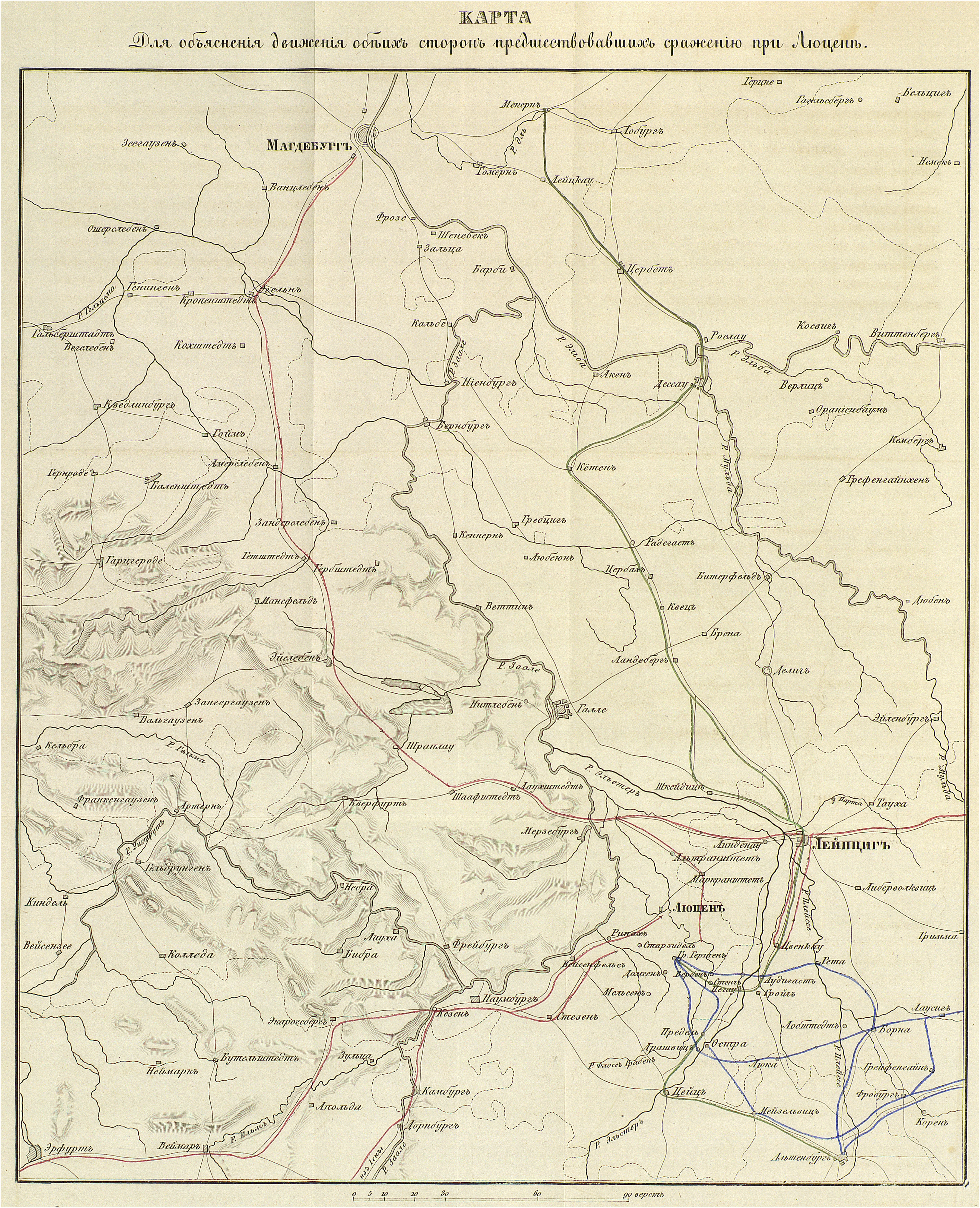 Карта для объяснения движения обеих сторон, предшествовавших сражению при Люцене