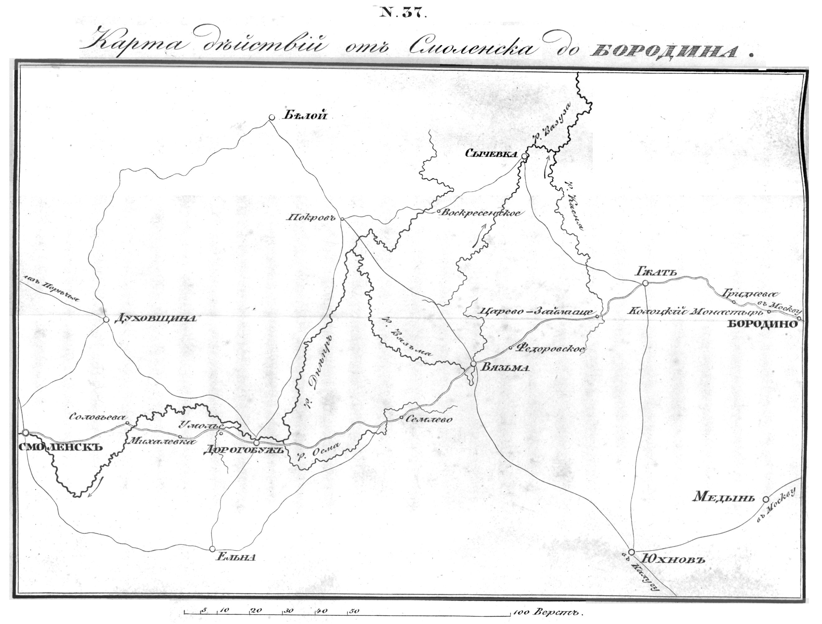 Карта действий от Смоленска до Бородина