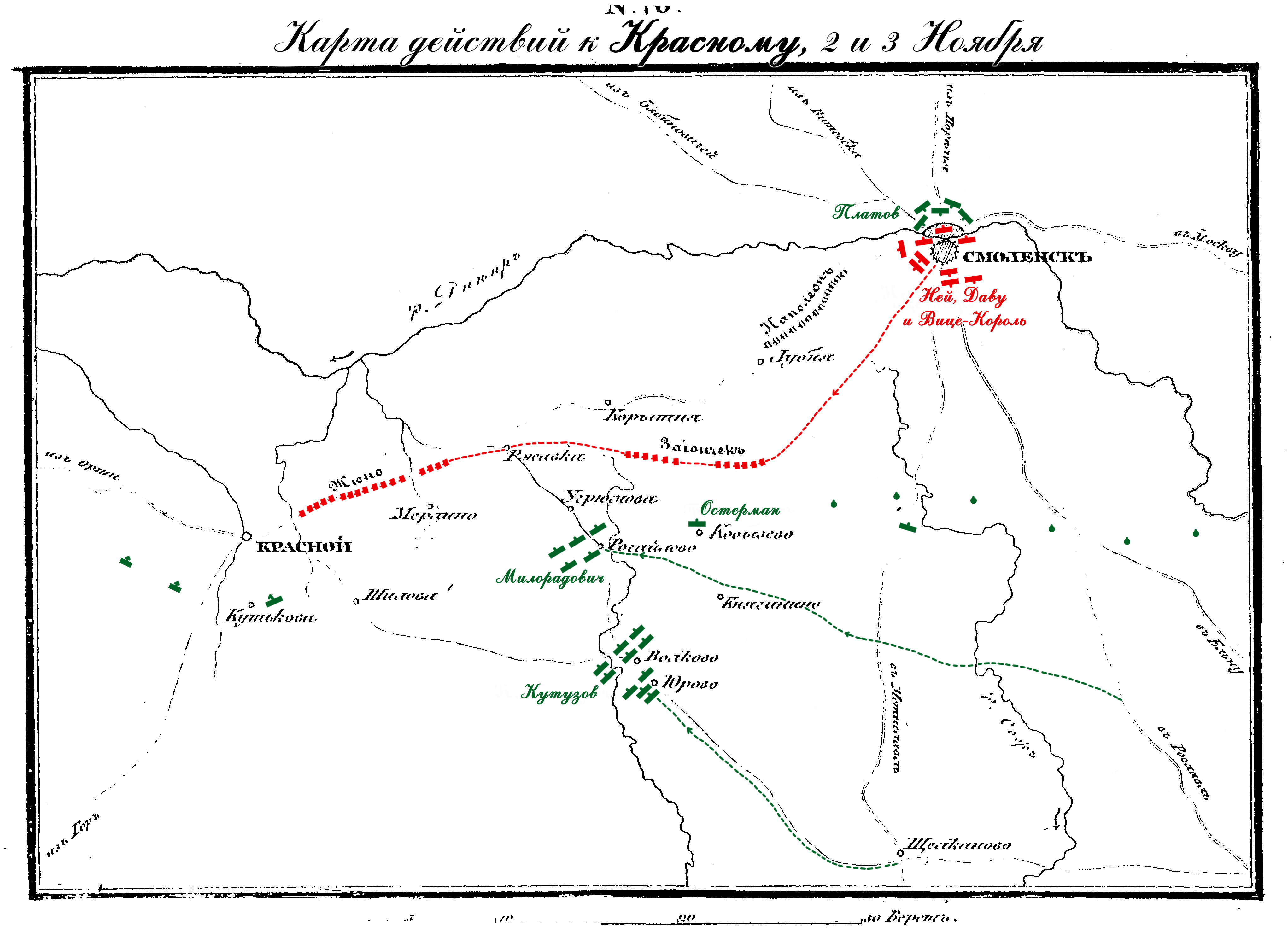 Карта действий к Красному 2-го и 3-го Ноября 1812 года.