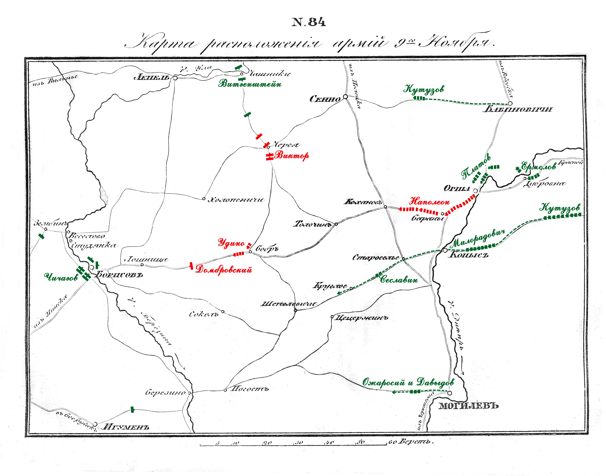 Карта расположения армий 9-го Ноября 1812 года.