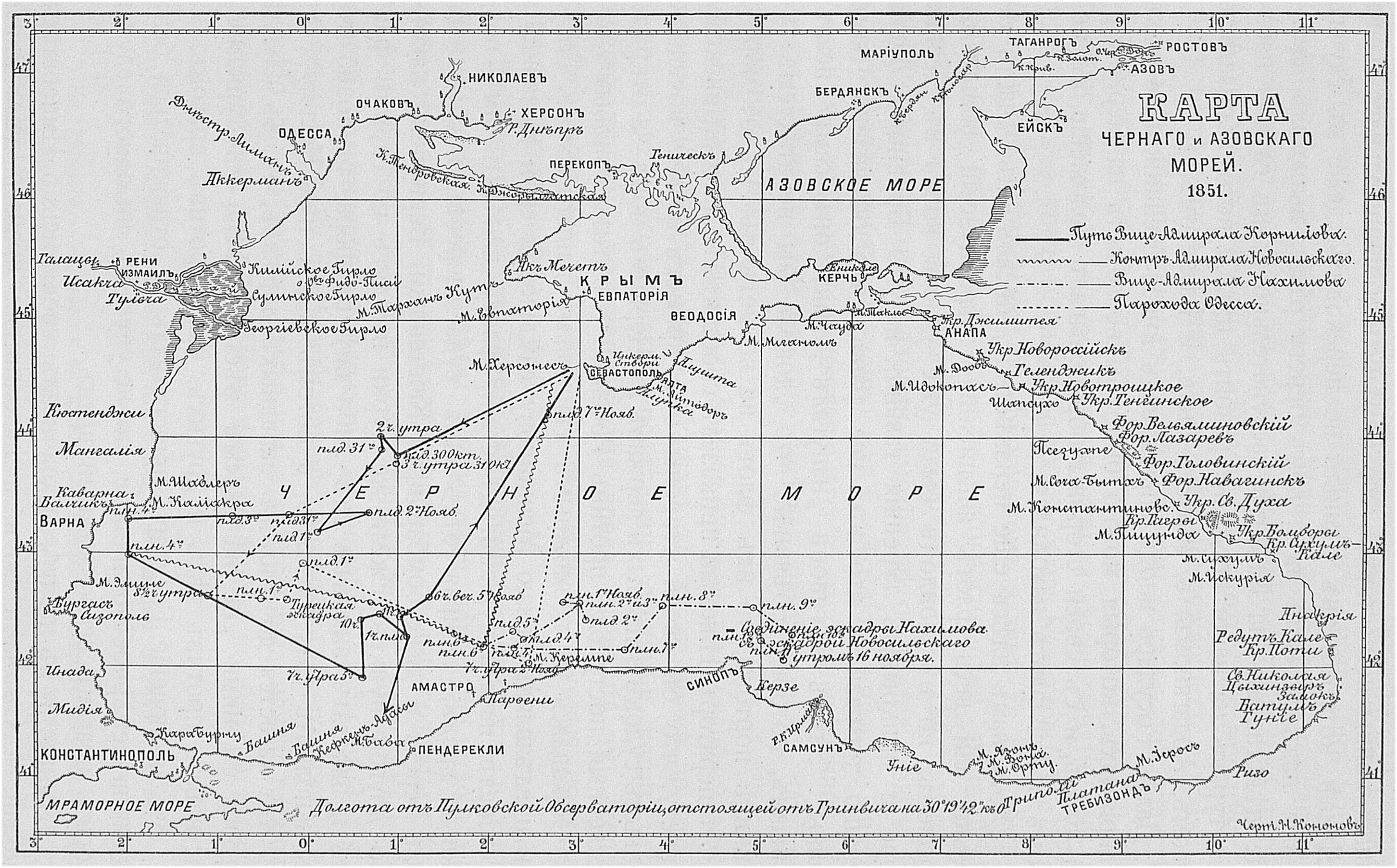Схема № 11. Карта Черного и Азовского морей 1851.