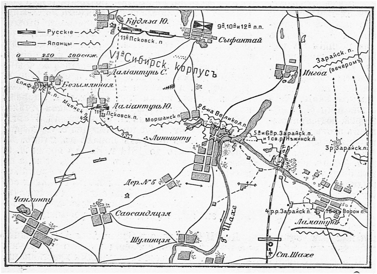 Расположение русских и японских войск у селения Линшинпу во время сентябрьского наступления