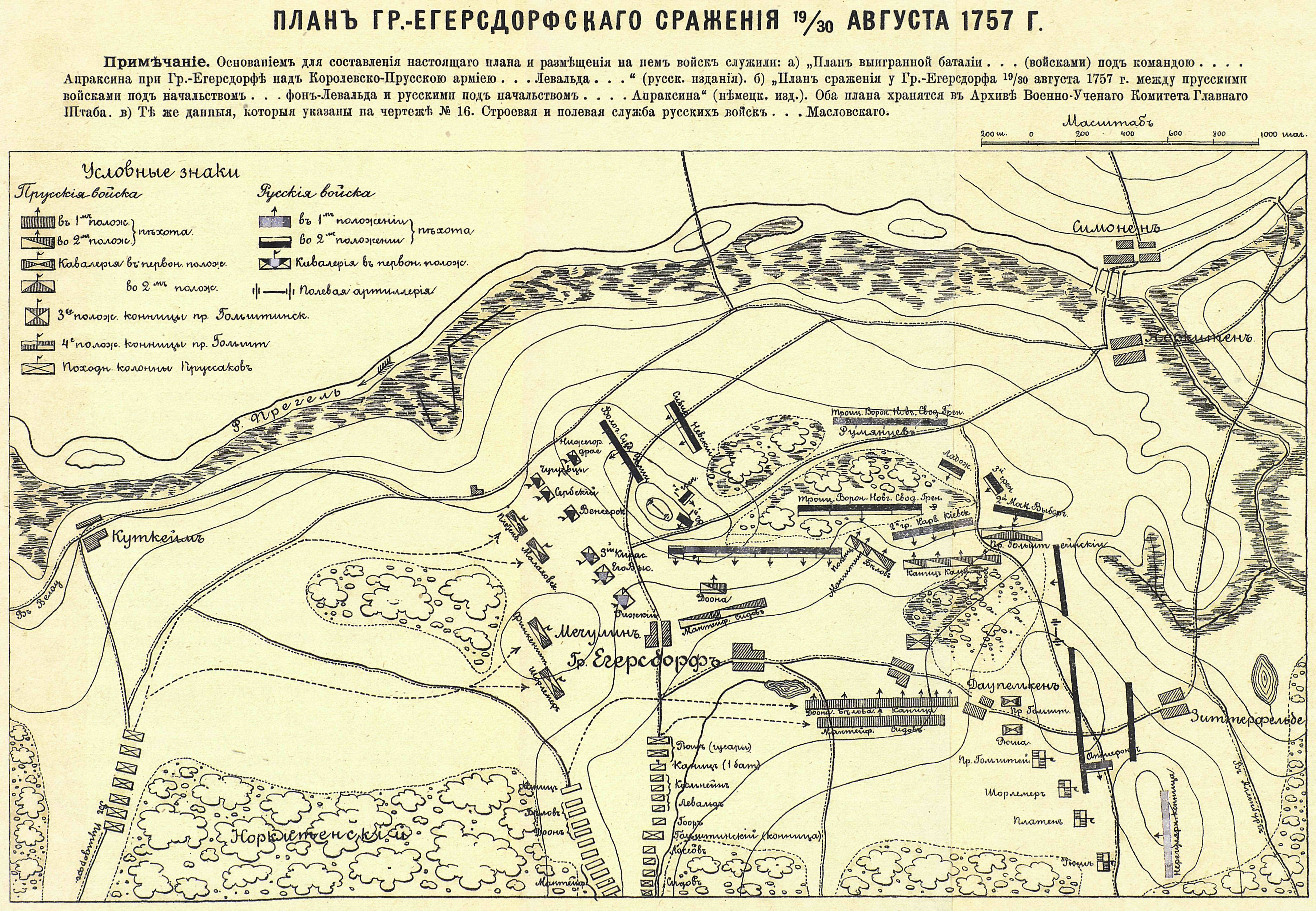 План Гросс-Егерсдорфского сражения 19/30 августа 1757 года