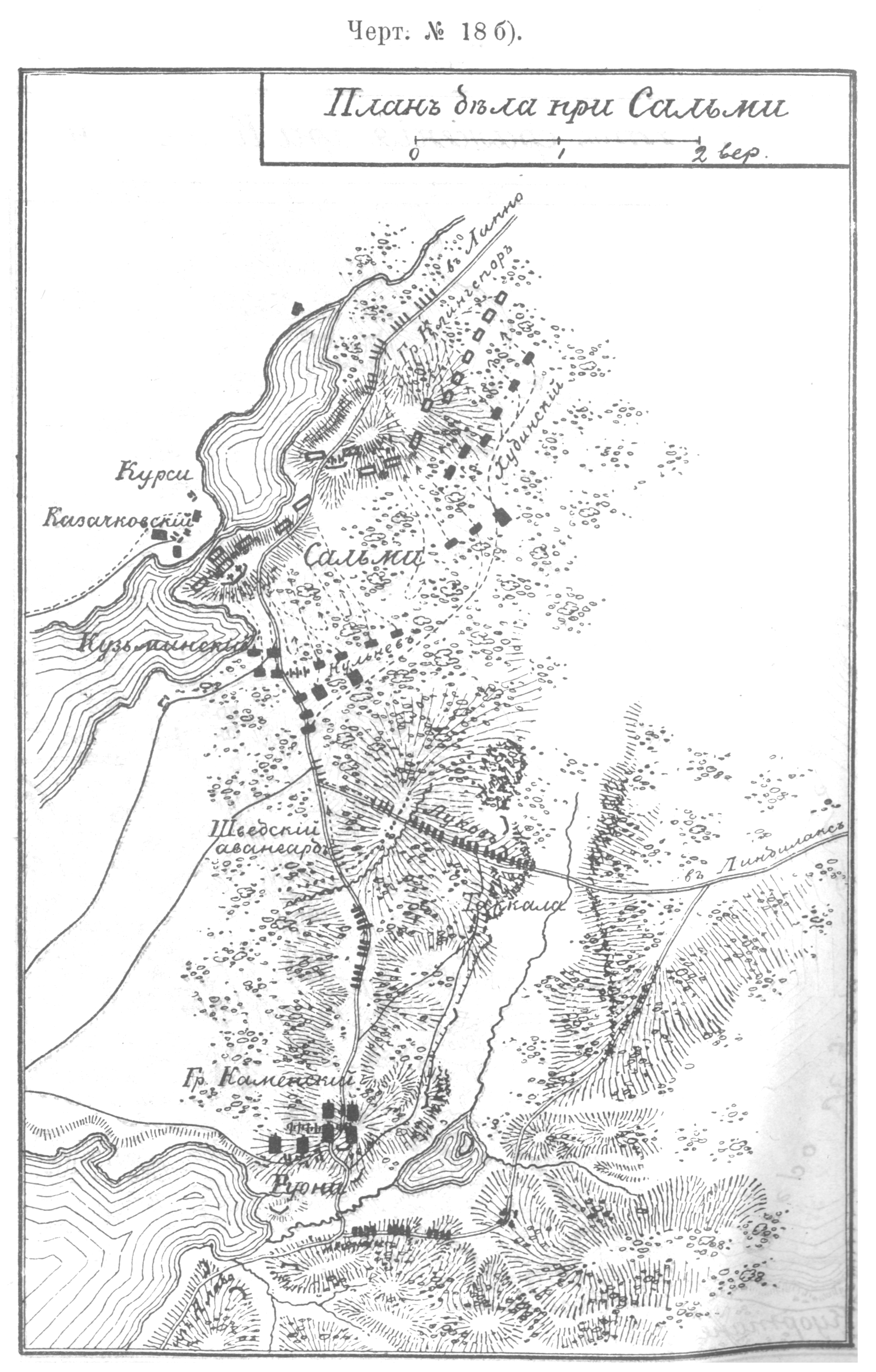 Карта-схема битвы при Фрауштадте, 13 (3) февраля 1706 года