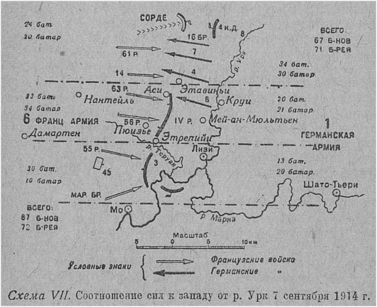 Соотношение сил к западу от реки Урк 7 сентября 1914 года