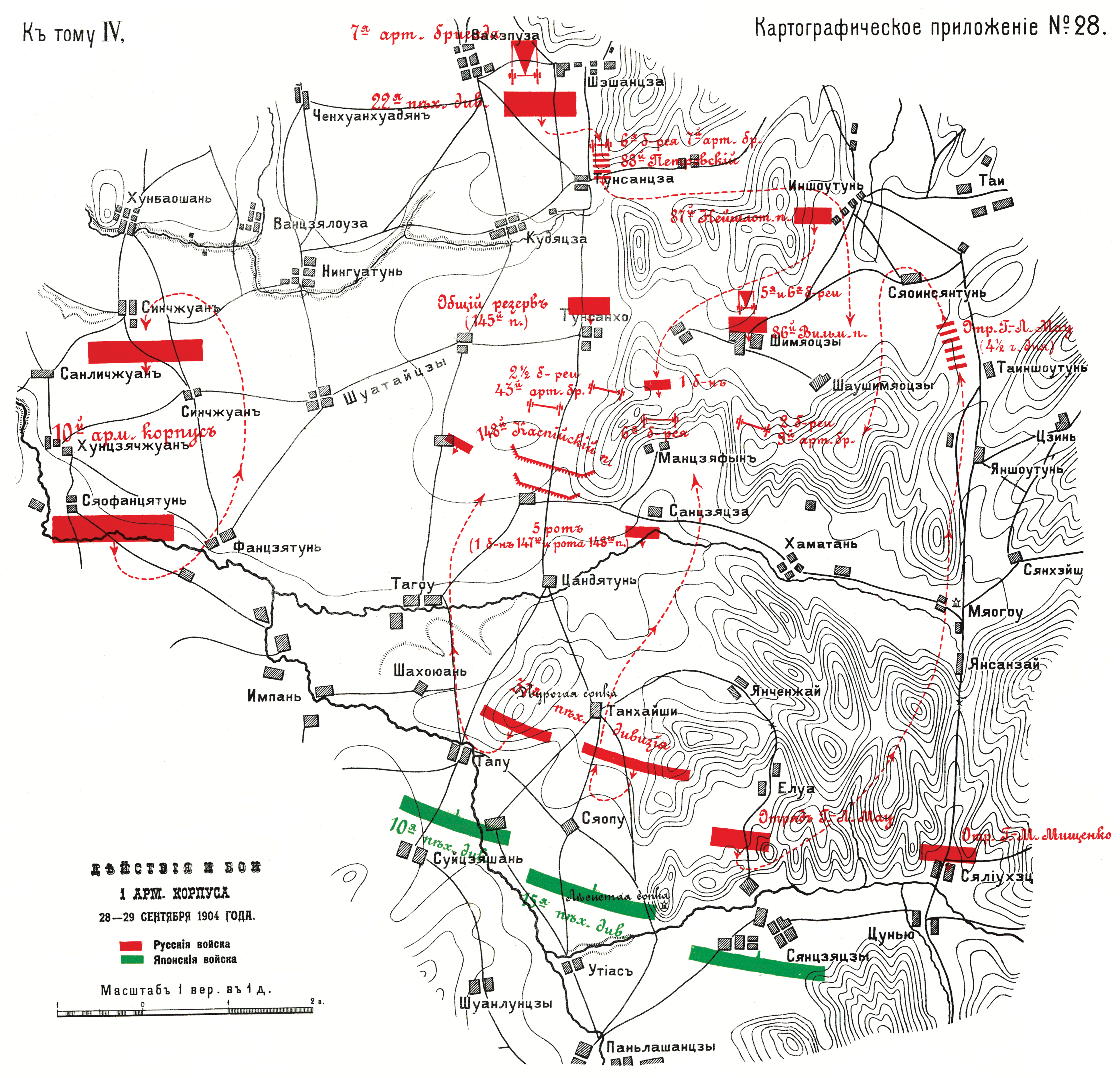 Действия и бои 1 Армейского корпуса 28-29 сентября 1904 года