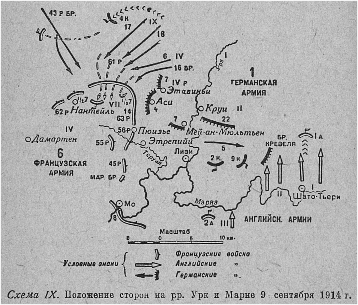Положение сторон на рр.Урк и Марке 9 сентября 1914 года