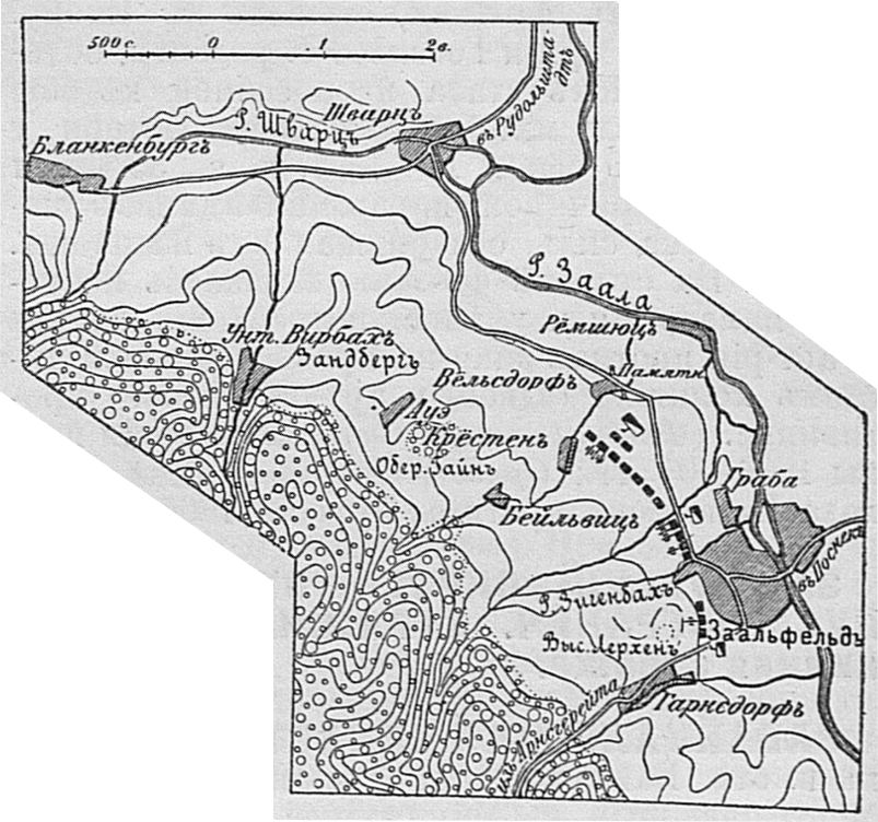 Карта-схема битвы при Фрауштадте, 13 (3) февраля 1706 года