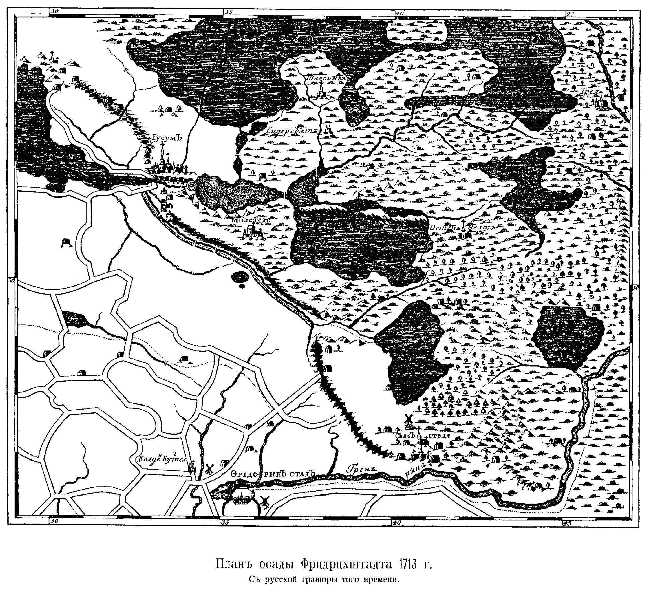 Осада Фридрихштадта 1713 год. С русской гравюры того времени