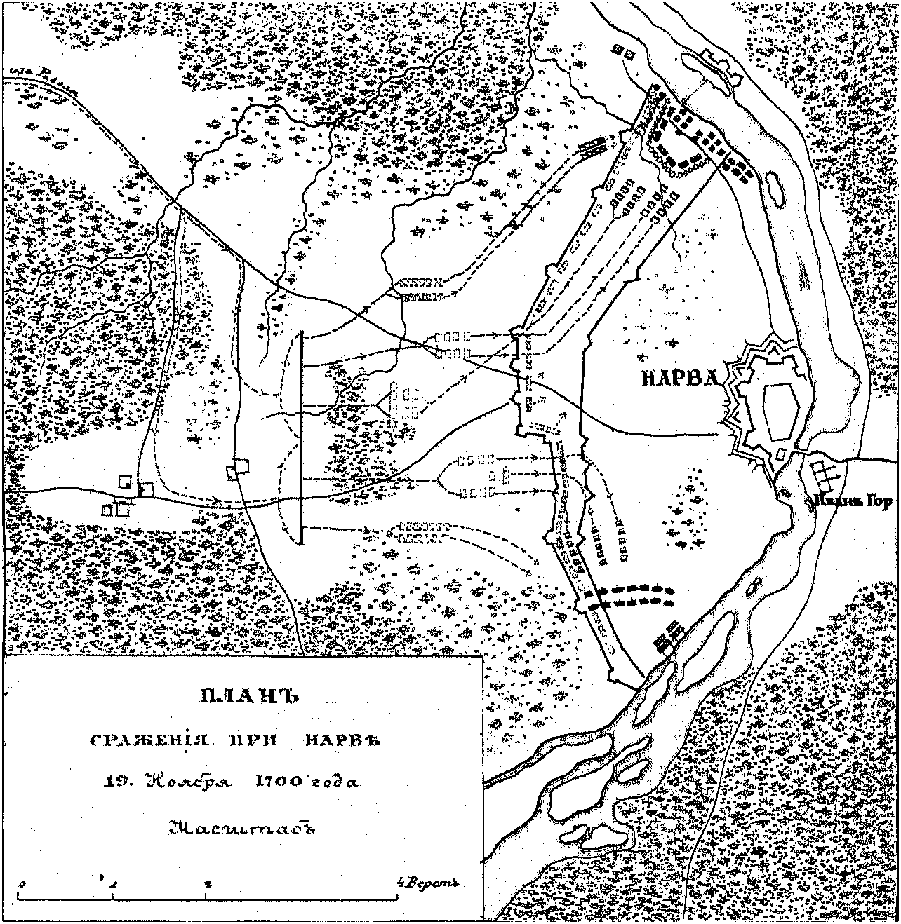 Карта-схема битвы при Фрауштадте, 13 (3) февраля 1706 года