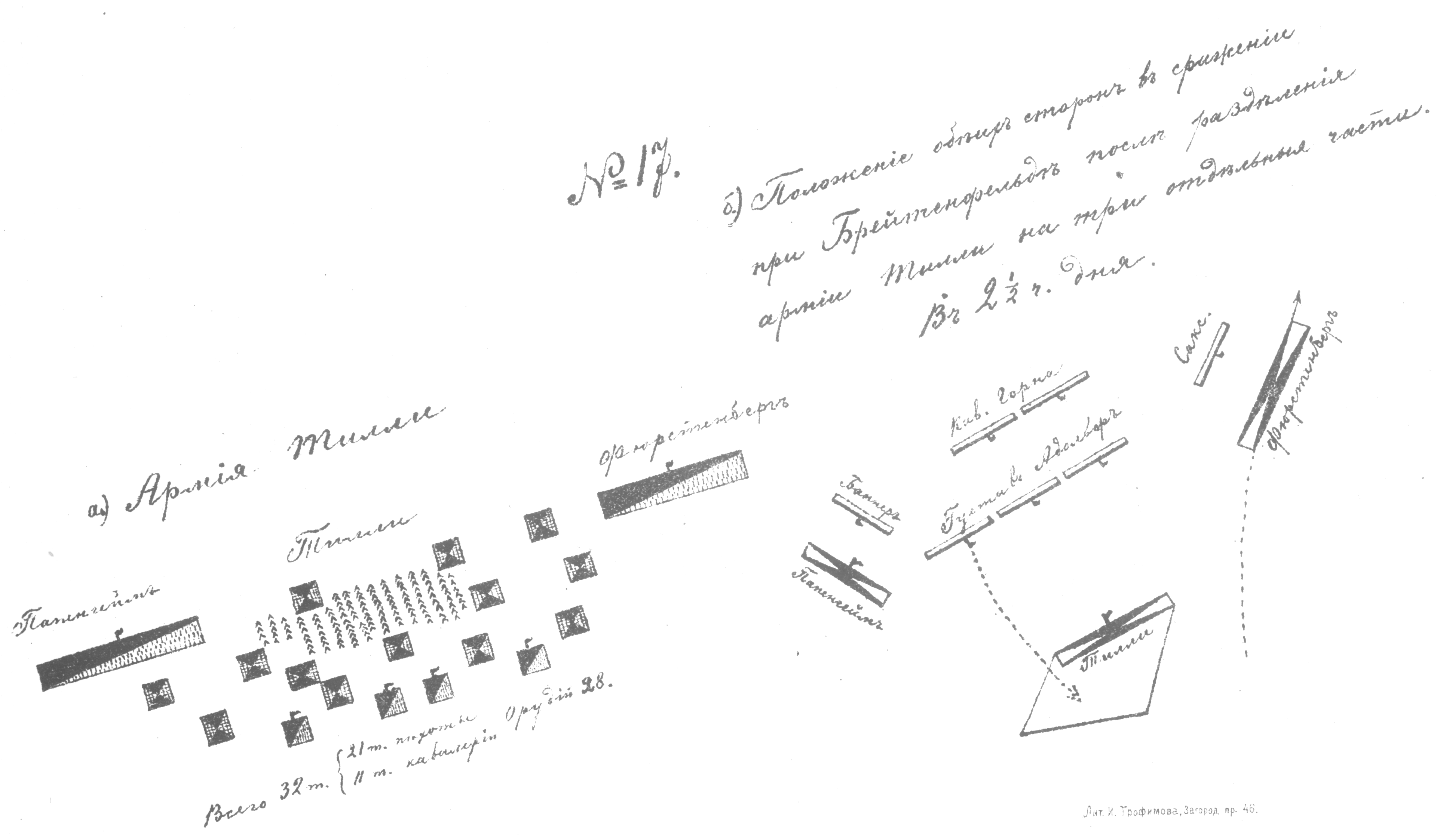 Положение обеих сторон в сражении при Брейтенфельде после разделения армии Тилли на три отдельные части. В 2 1/2 ч дня
