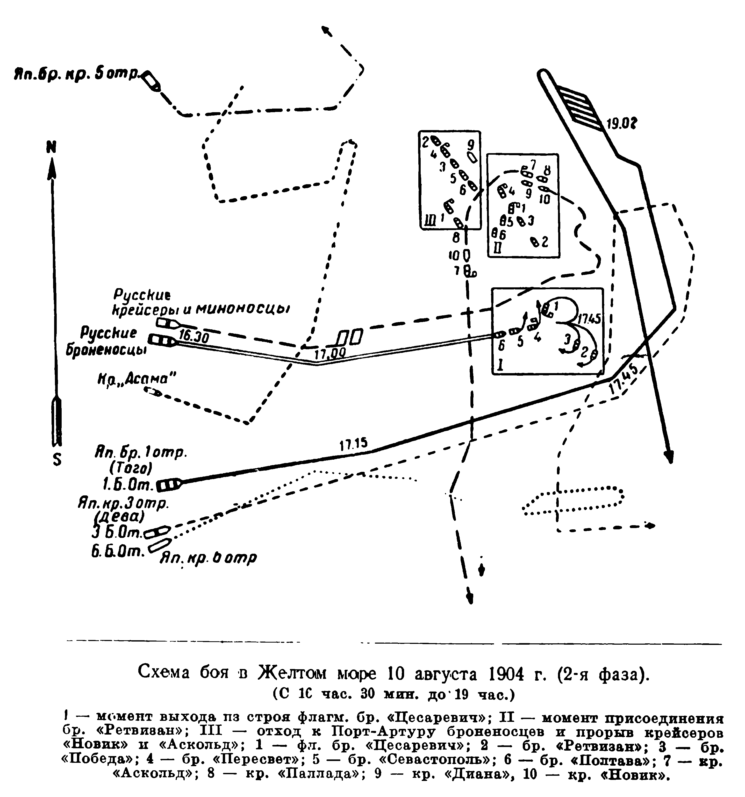 Бой в Желтом море 10 августа 1904 года (2 фаза). С 16 часов 30 минут до 19 часов