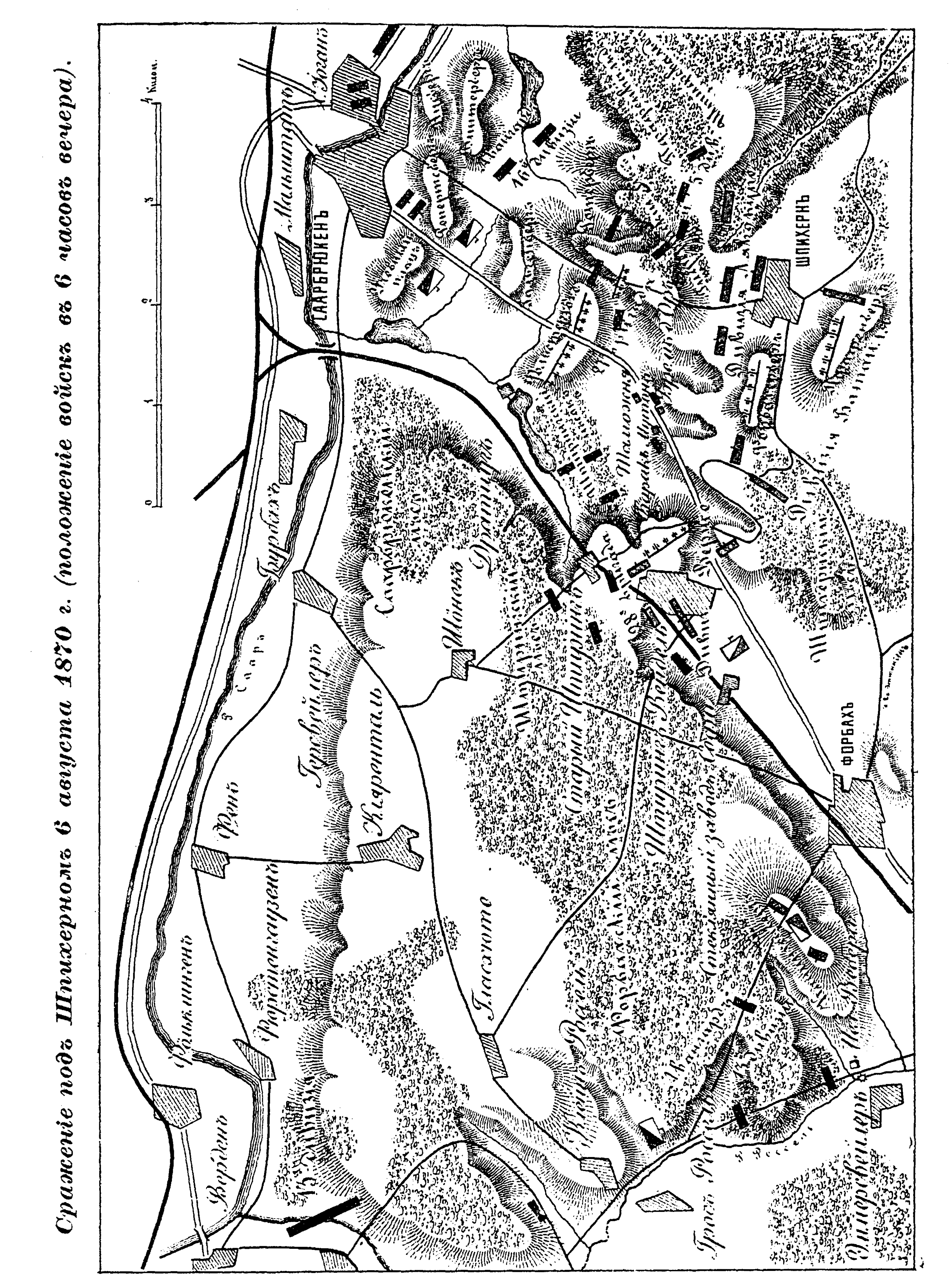 Сражение под Шпихерном 6 августа 1870 года (положение войск в 6 часов вечера)