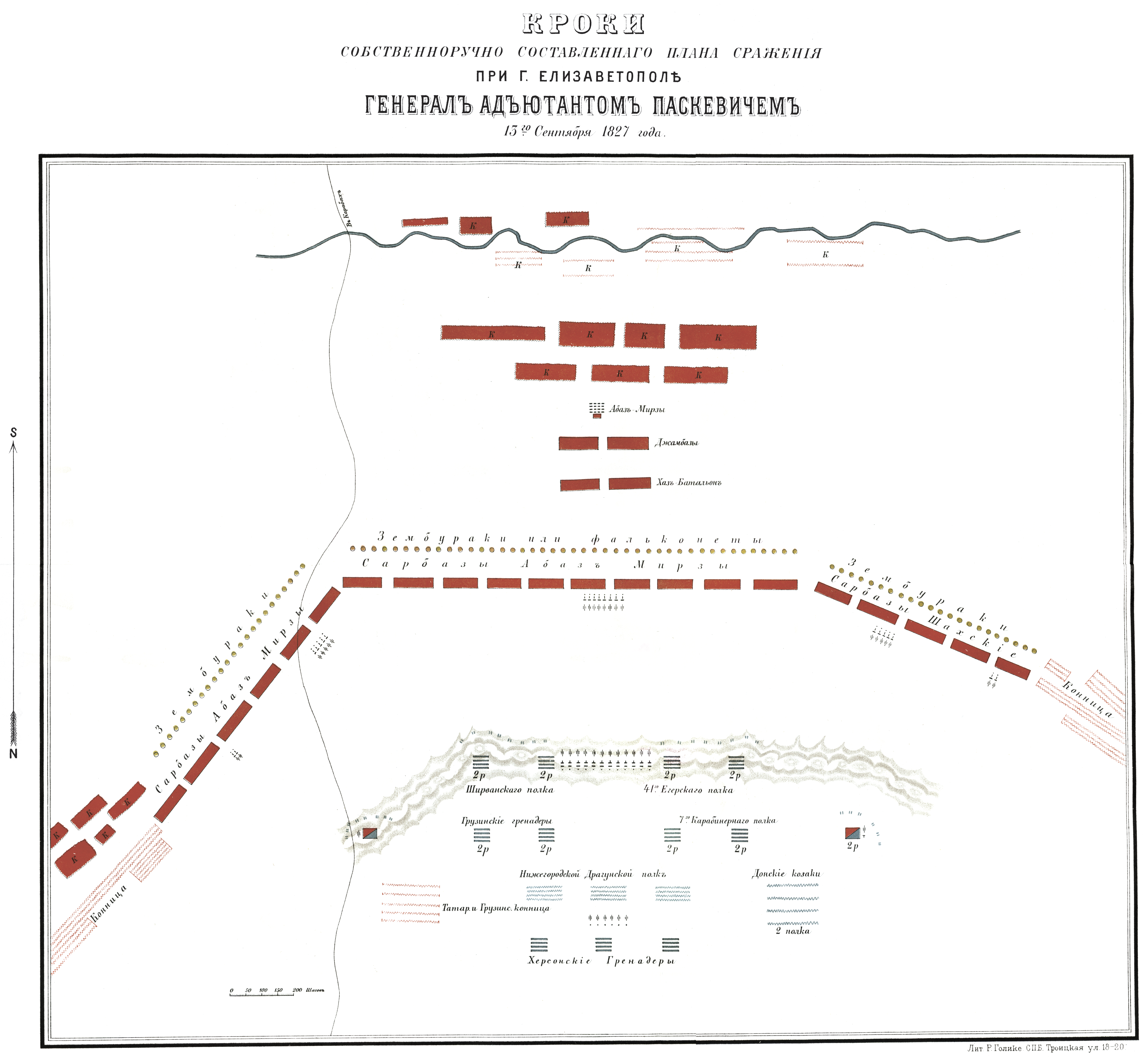 Кроки собственноручно составленного плана сражения при городе Елисаветполе Генерал-Адъютантом Паскевичем 1827 года