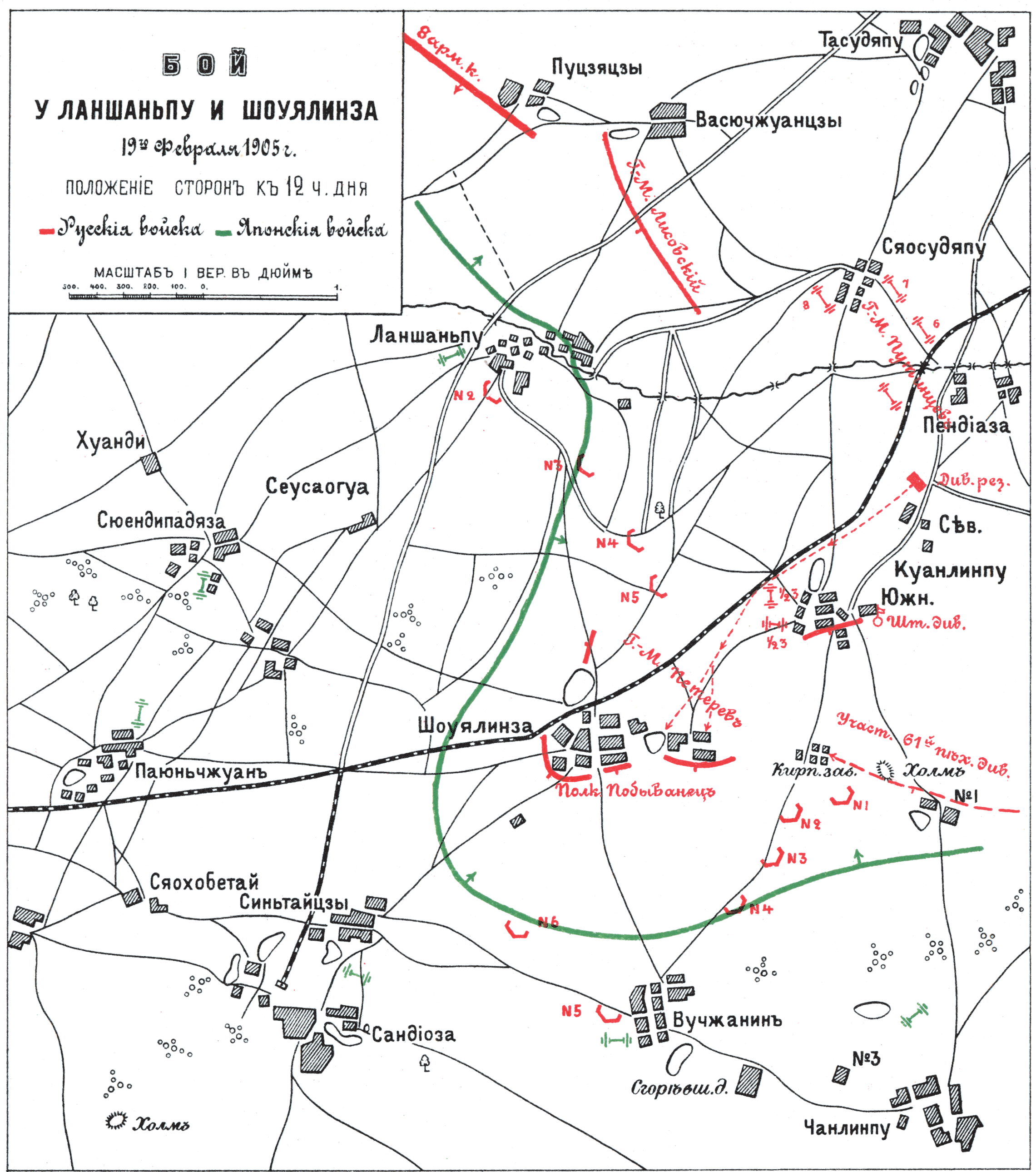 Бой у Ланшаньпу и Шоуялинза 19 февраля 1905 года. Положение сторон к 12 часам дня