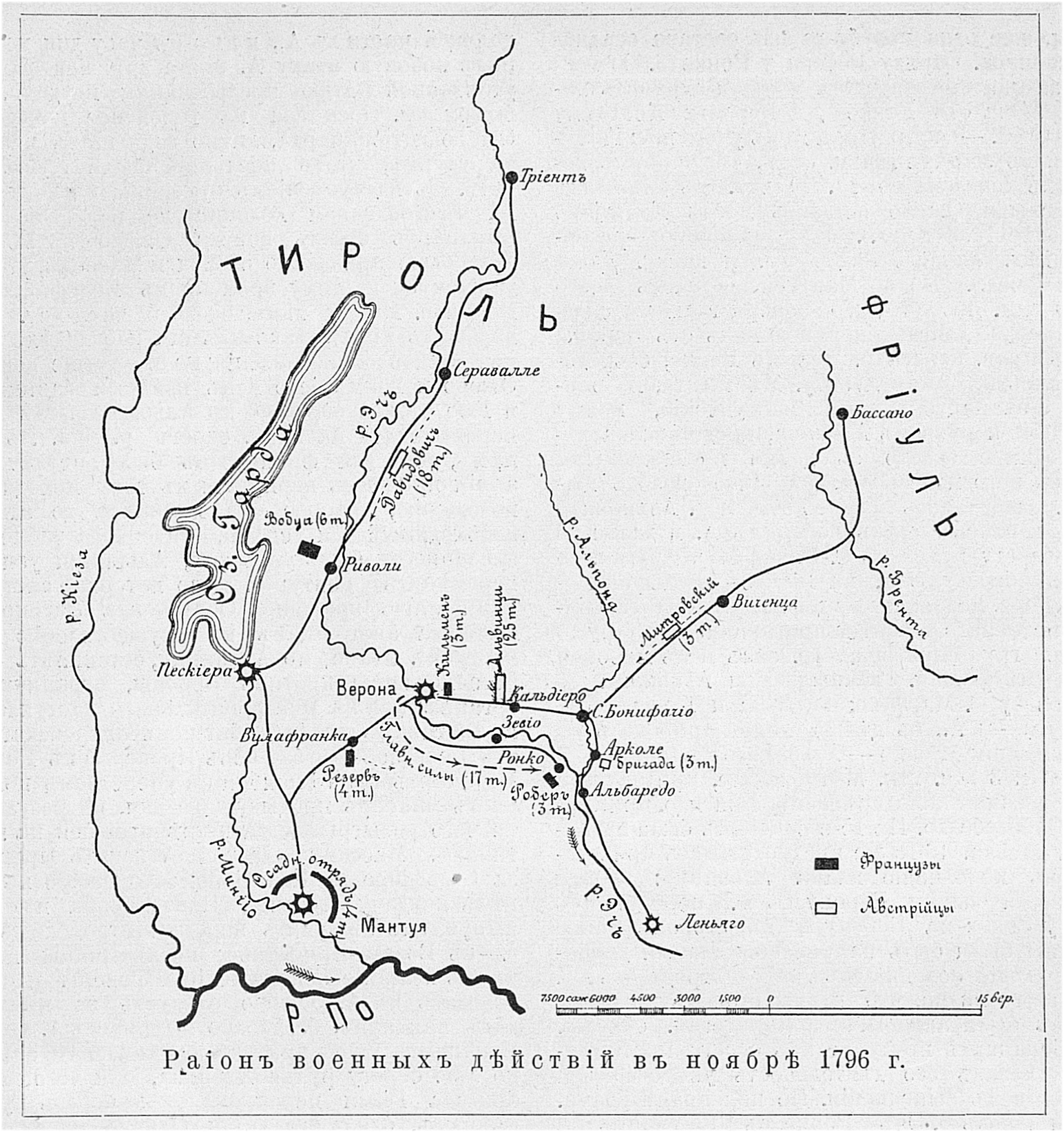 Район боевых действий в окрестностях Арколе в ноябре 1796 года